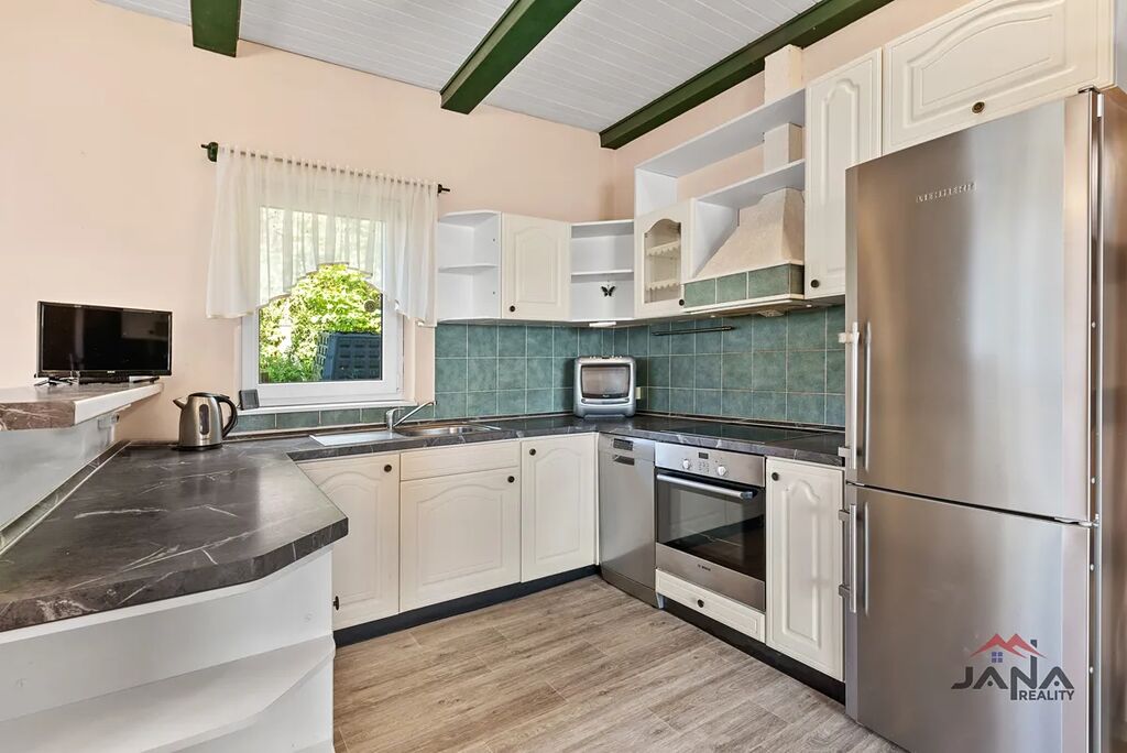 Na dům přímo navazuje stodola, kde je garáž, kryté stání bez vrat a zbylá část původní stodoly – ideální pro dílnu nebo skladování.