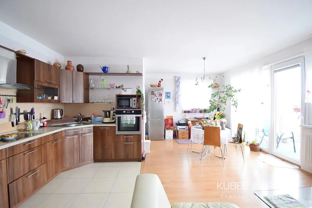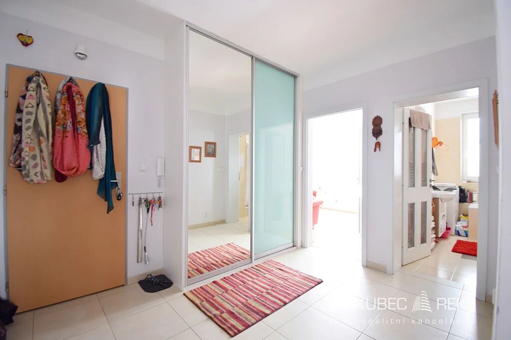 Byt je vybaven kuchyňskou linkou, el. troubo se sklokeramickou varnou deskou, digestoří, velkým gaučem v obýváku a vestavěnou skříní na chodbě. Dispozice bytu zahrnuje vstupní chodbu, obývací pokoj s kuchyní, ložnici, pokoj, pracovnu a koupelnu s toaletou. Velkým bonusem jsou dva prostorné balkóny – jeden přístupný z obývacího pokoje, druhý z jednoho z pokojů. Díky orientaci a světlosti působí byt vzdušně a útulně.