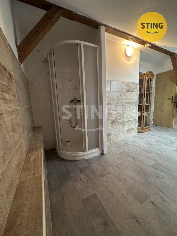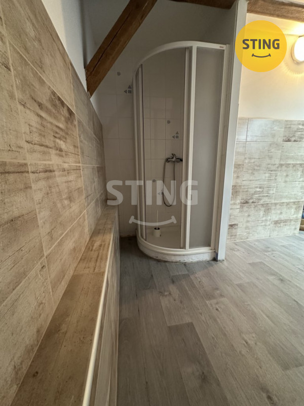 V bytě se nachází vstupní chodba, kuchyně s jídelnou a atypická prostorná otevřená místnost. Koupelna se sprchovým koutem a WC.