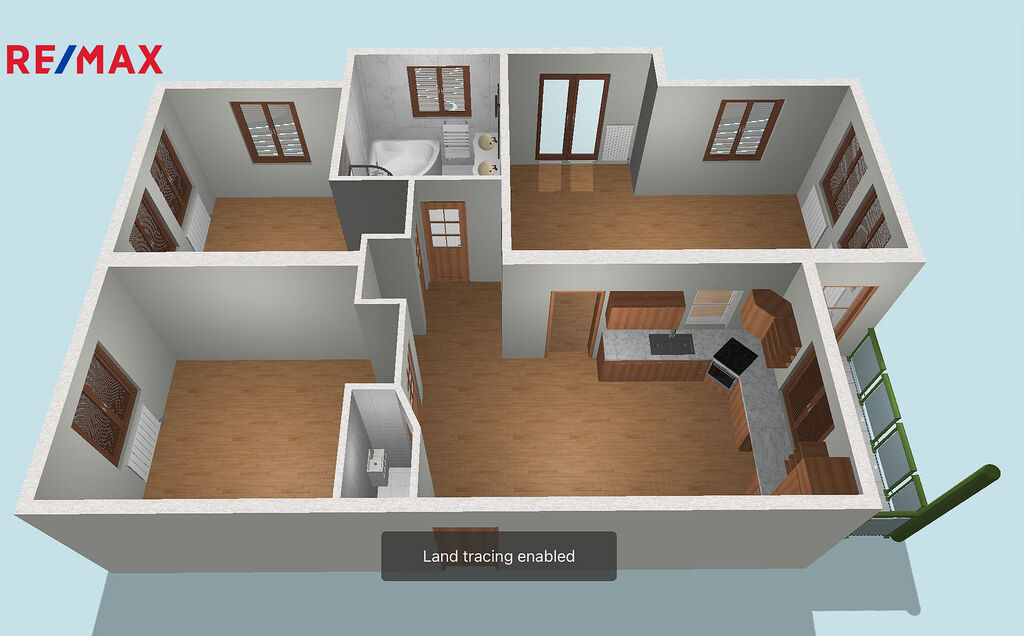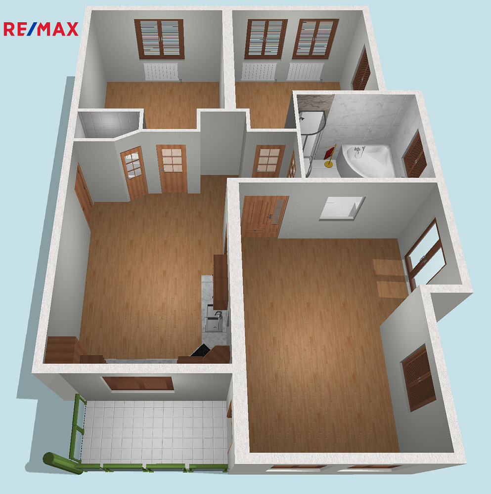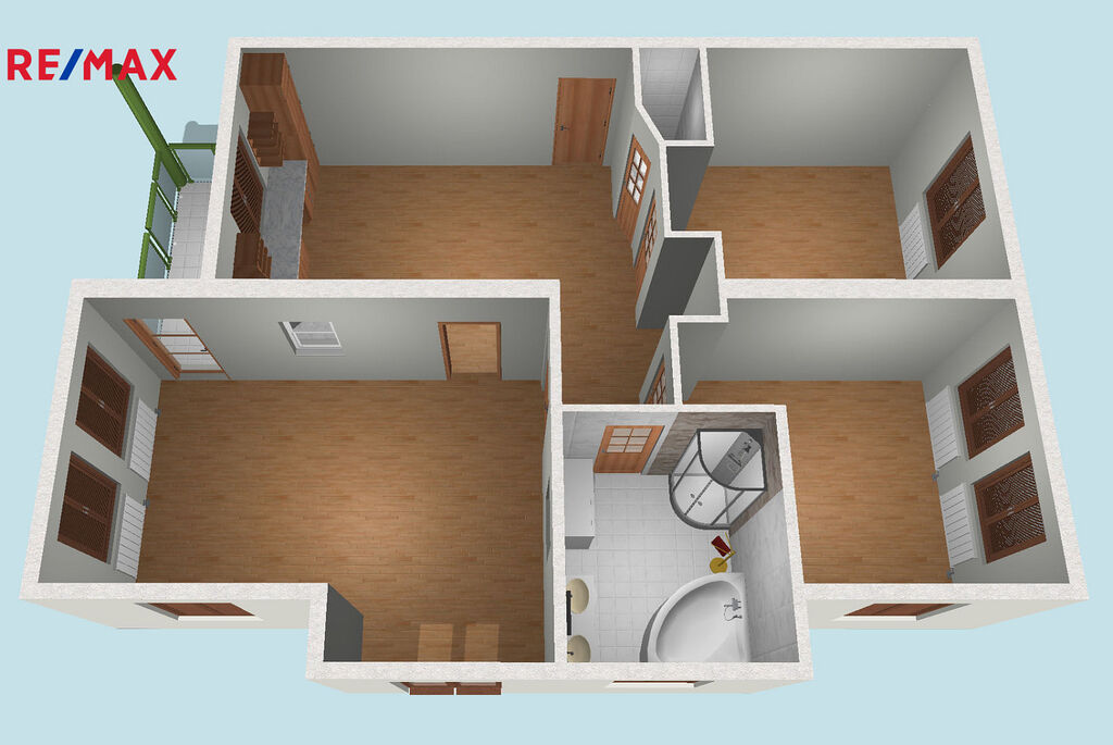 Bytová jednotka o podlahové ploše 102 m² se nachází ve 3. np třípodlažního cihlového domu, dispozice pokojů dle půdorysu, okna s krásnými výhledy jsou orientována na východ (Beskydy), jih a západ (centrum města). K dispozici je balkon se vstupem z obývacího pokoje.