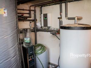 Dům je napojen na elektřinu, vlastní studnu a domácí ČOV, vytápění zajišťuje tepelné čerpadlo s možností záložního kotle na tuhá paliva.