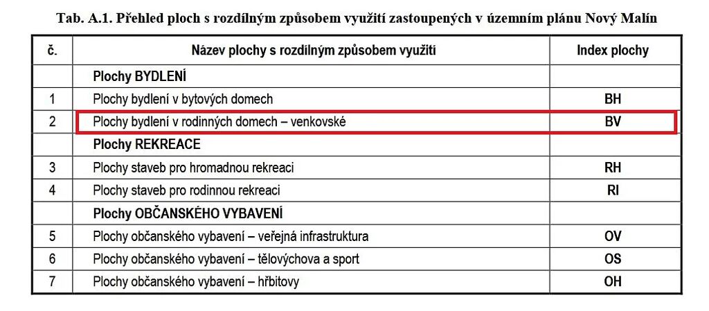V územním plánu obce je pozemek označen jako plochy bydlení v rodinných domech - venkovské (BV, B82)