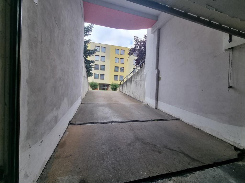 Bytový dům i stání je uzamčené. Výška na průjezd 2 metry.