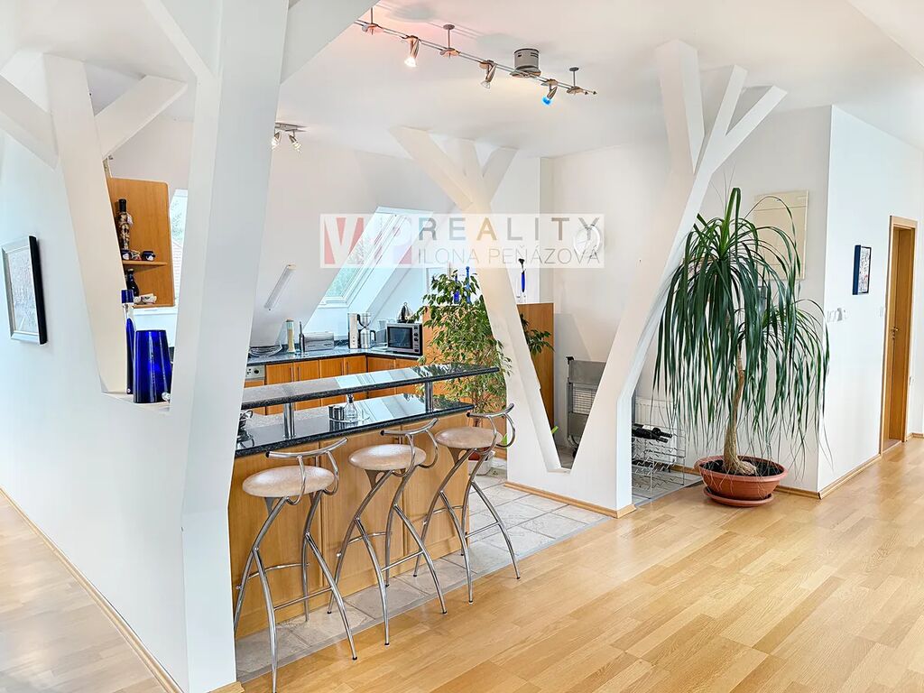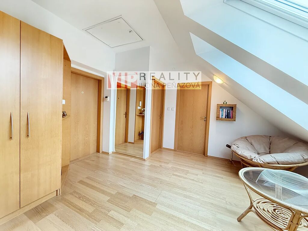 Z předsíně je přístup i do vlastního půdního prostoru, který se rozkládá nad celým bytem a nabízí obrovský potenciál.