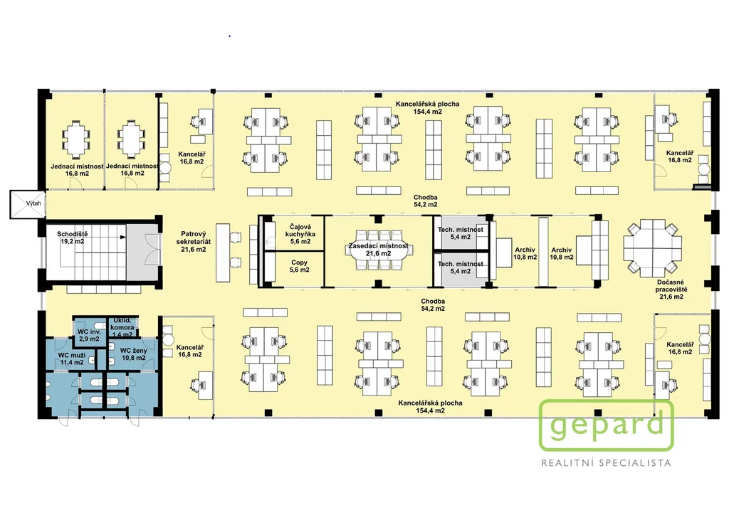 V případě zájmu je možné pronajmout jiné části tohoto patra: 32 m2 (část plochy B), 67,5 m2 (část plochy B), 98 m2 (plocha B) a 132 m2 (plocha C) nebo celé patro dohromady.