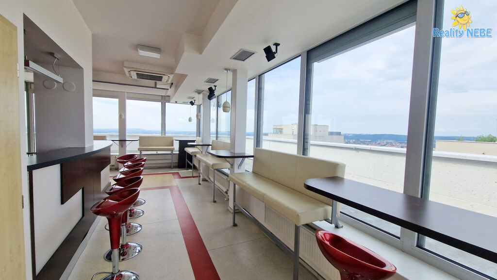 V celém 16. NP se pak nachází koktejlbar s wellness zázemím a terasou (214 m2) – koktejlbar (59 m2 – bar, ozvučení Bose, diskoefekty, 34 míst k sezení, 2x WC), převlékárna (7 m2 – parní lázeň, uzamykatelné skříňky), okružní terasa (148 m2 – sauna finská / parní / 5 míst, vířivá vana /7 míst/, gril bar, 30 míst k sezení, denní a noční dalekohled s kruhovým výhledem na Brno a okolí až 120 km).