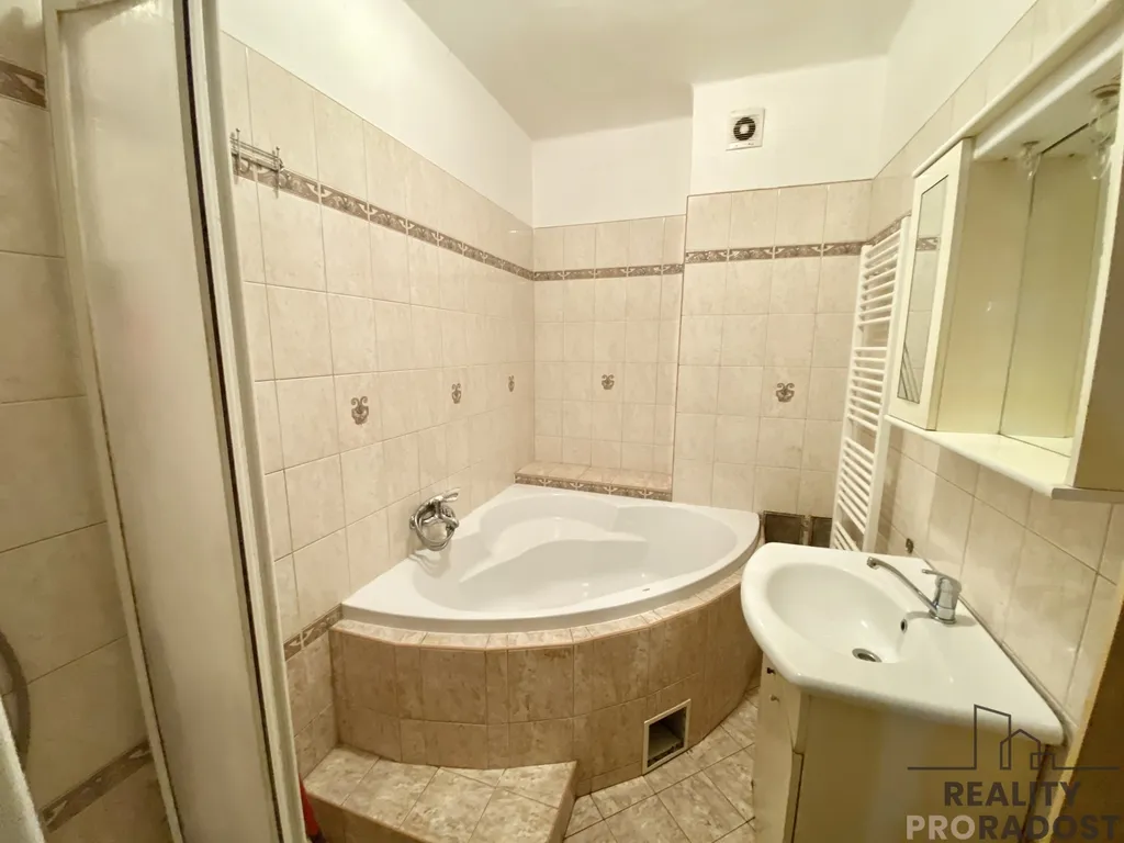 Jedná se o prodej id. 1/2 domu, kdy k dispozici a k užívání je bytová jednotka 4+1 v přízemí domu se samostatným vchodem. Koupelna a WC mají vstup ze společné chodby, tyto prostory lze po dohodě od společné chodby stavebně oddělit. V domě je společná veranda, vstupní chodba se schodištěm, společný sklep a půda. Byt je vytápěn plynovým kotlem - ústředně.