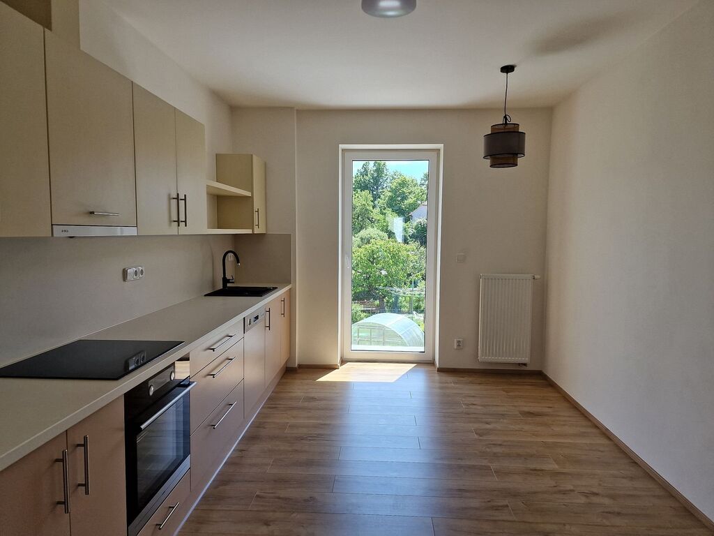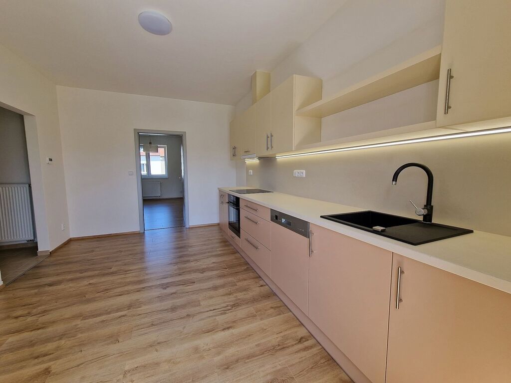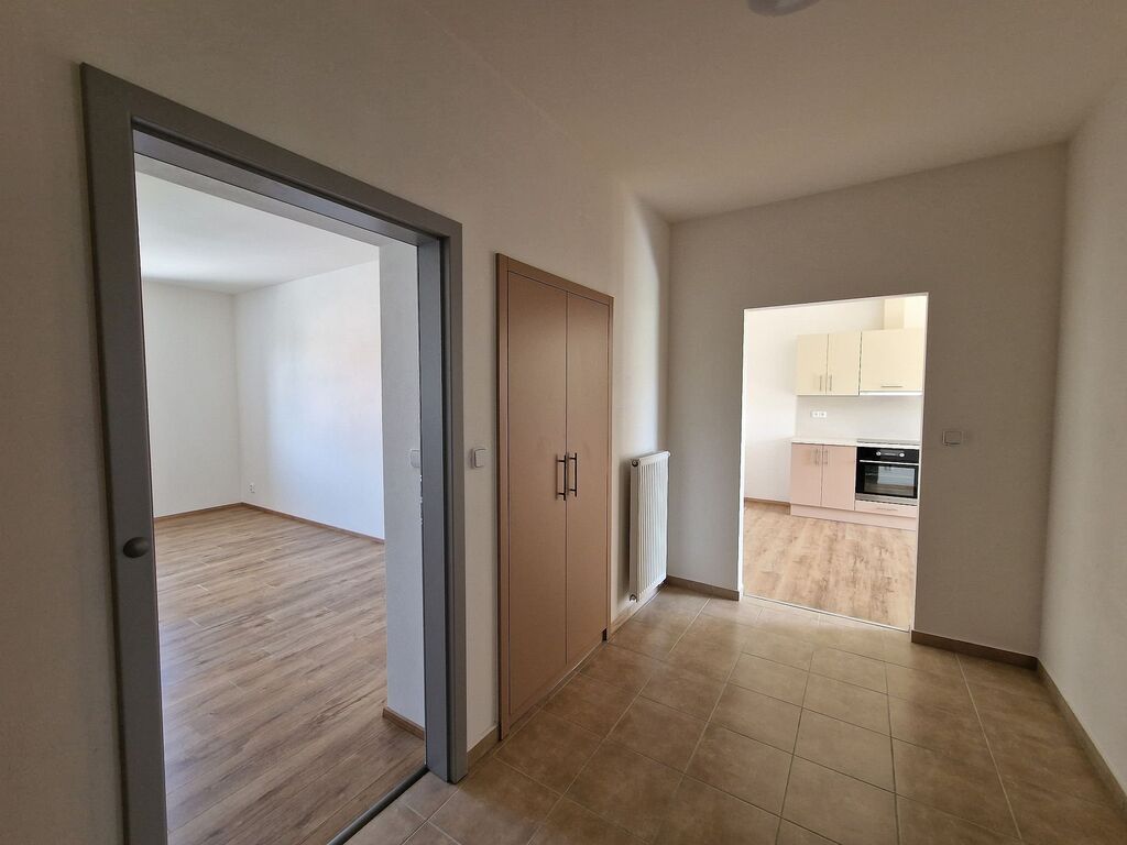 Po vstupu do bytu Vás příjemně překvapí moderní a svěží design bytu. V kuchyni je nová kuchyňská linka, která je vybavena vestavěnými spotřebiči jako je elektrická varná deska, elektrická trouba, myčka na nádobí a digestoř. Předností této kuchyně je dostatek prostoru i pro jídelní kout. Obývací pokoj navazuje na kuchyň a tím nabízí praktické využití obytných prostor. Na zastřešeném balkóně o výměře cca 3 m2 s výhledem do zeleného vnitrobloku je možné trávit chvíle relaxace. Do ložnice se vstupuje samostatným vstupem z předsíně. V prostorné koupelně se sprchovým koutem a umyvadlem je příprava a místo pro umístění pračky. Na stěně je topný žebřík. Toaleta je samostatně. Ve vstupní hale je umístěna vestavěná skříň a je zde dostatek místa pro šatní věšák, zrcadlo atd. Zajímavostí je velmi praktická, samostatná, zděná komora. V celém bytě jsou svítidla. Podlahu kryje laminátová plovoucí podlaha nebo dlažba.
