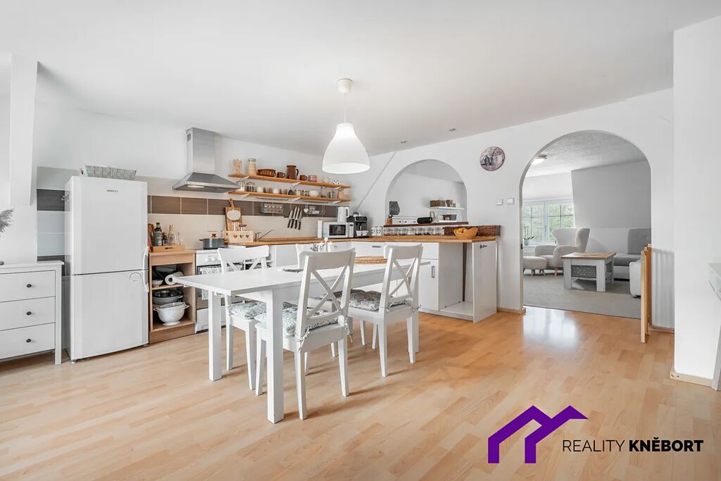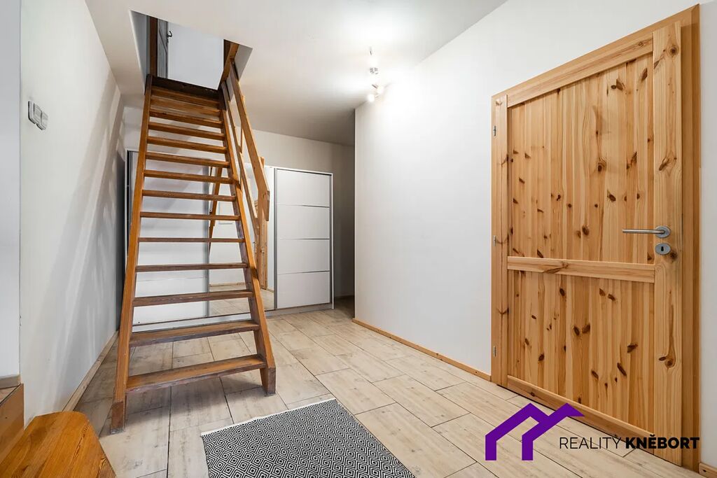 Dispoziční řešení bytu je 3+1 s otevřeným horním prostorem. K bytu dále náleží sklep, kůlna a dvůr za domem, které jsou společné s dalšími dvěma byty.
