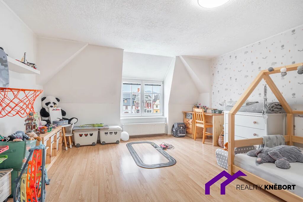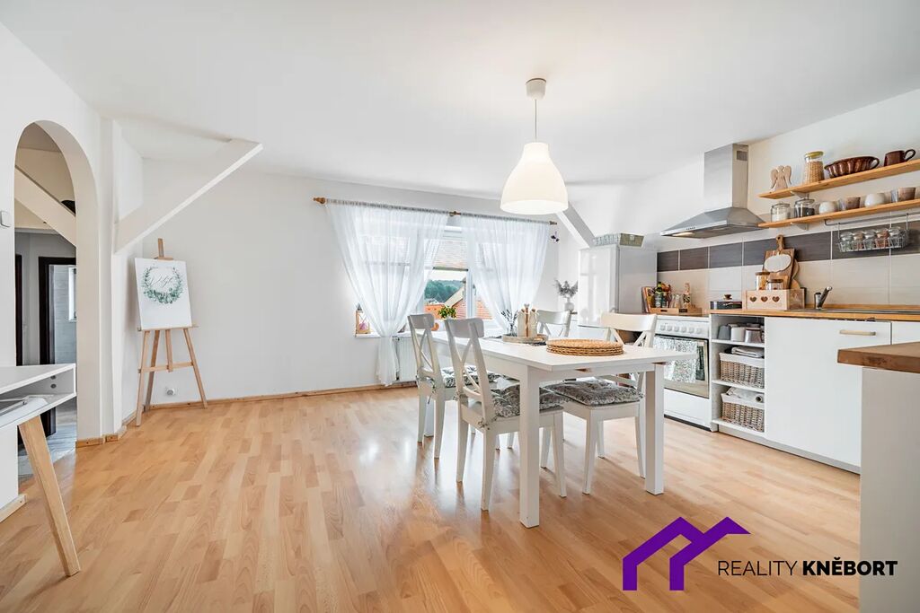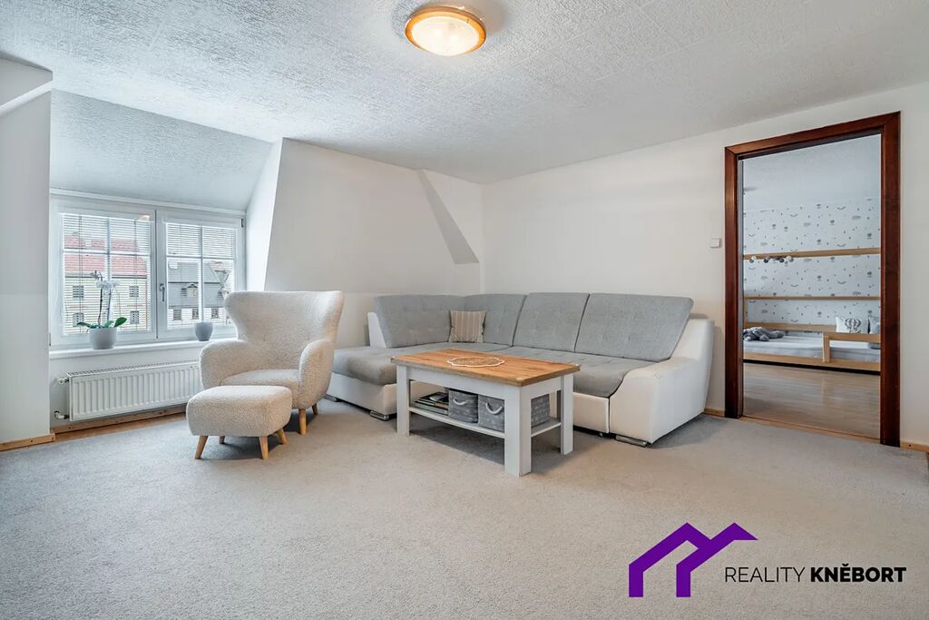 Byt se nachází ve druhém patře rodinného domu na náměstí Míru v centru Jablonného v Podještědí.