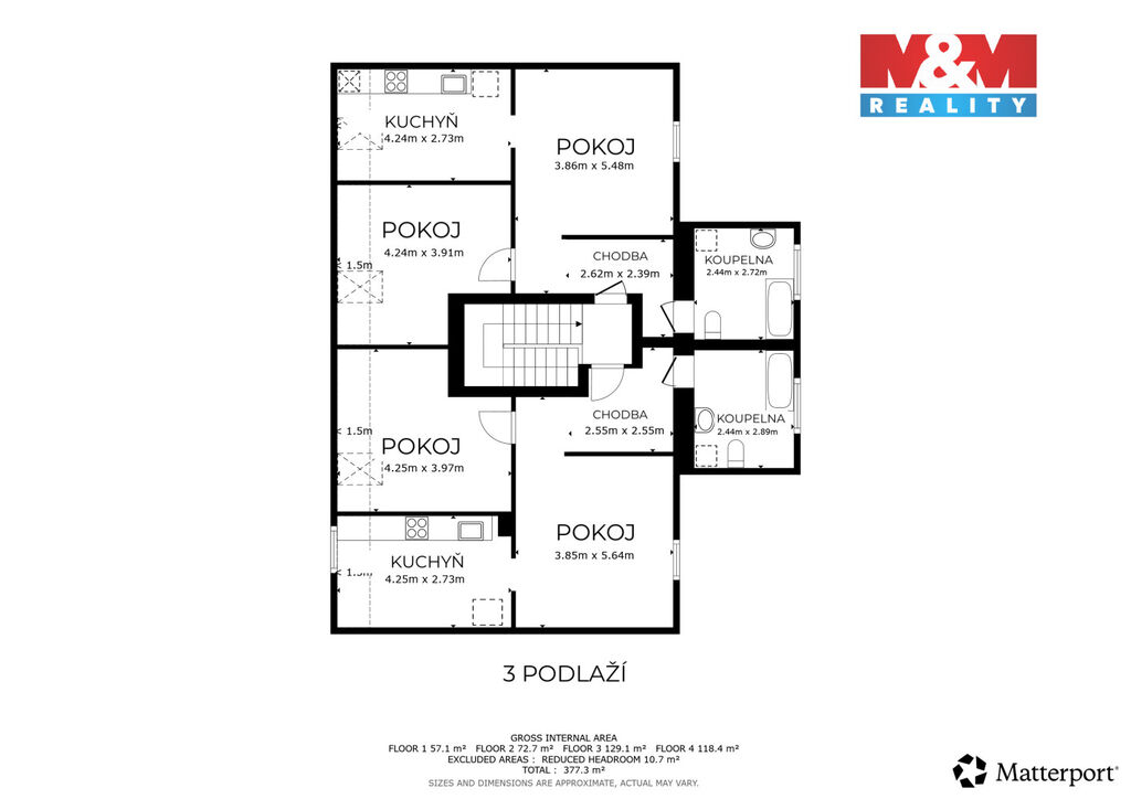 Pod jednou střechou se ukrývají také moderní matné kuchyňské linky, světlá dlažba v dekoru dřeva vyhřívaná podlahovým topením a stylové koupelny s vanou.