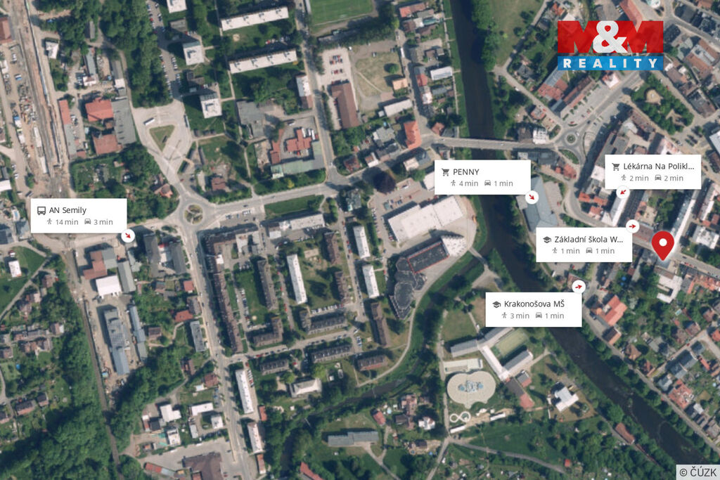 Dům se nachází v části okresního města Semily s výbornou dostupností do centra a veškeré občanské vybavenosti. Byt je určen ideálně pro zájemce, kteří ocení kvalitu, čistotu a klidné bydlení. V nájemném nejsou zahrnuty náklady spojené s užíváním bytu.