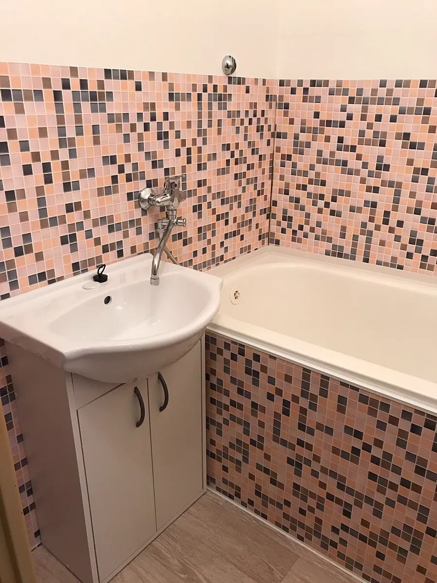 Byt je ve velmi dobrém stavebně-technickém stavu. V koupelně vana a umyvadlo. WC provedeno samostatně. Vytápění ústřední prostřednictvím dálkového zdroje, ohřev vody zajišťuje taktéž dálkový zdroj.