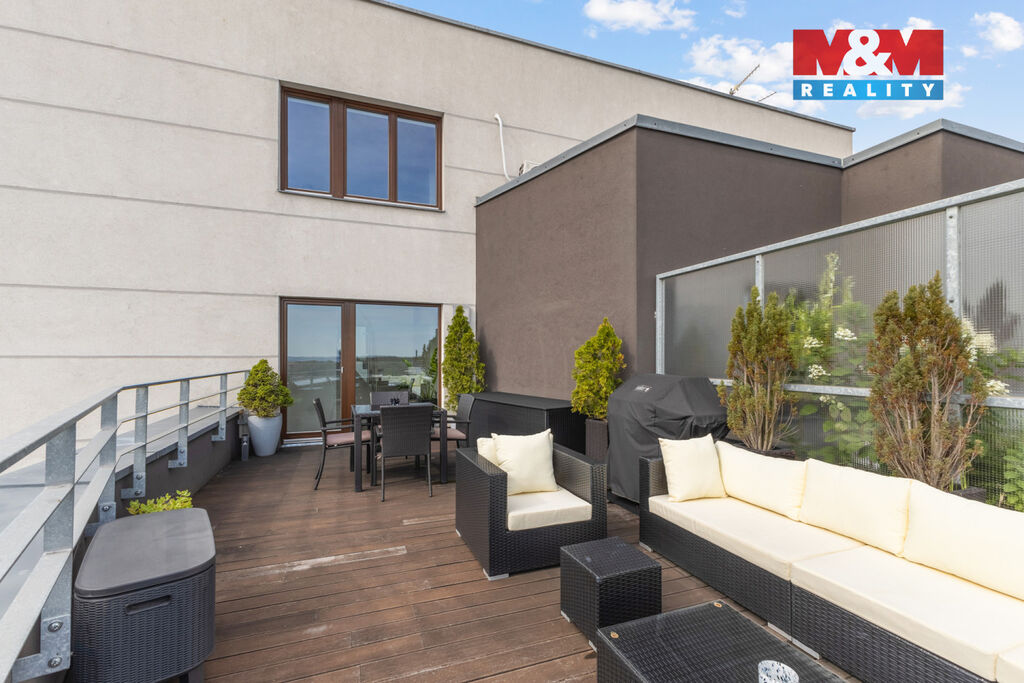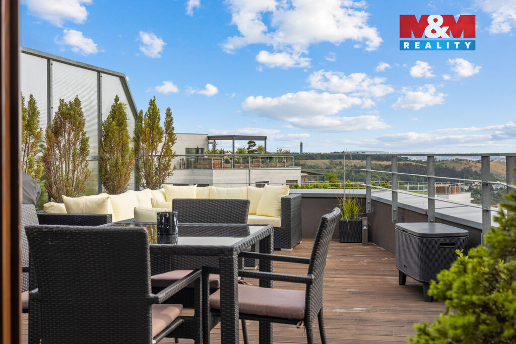 K bytu náleží terasa o rozloze 30 m² s překrásným výhledem, ideální pro relaxaci a zábavu.