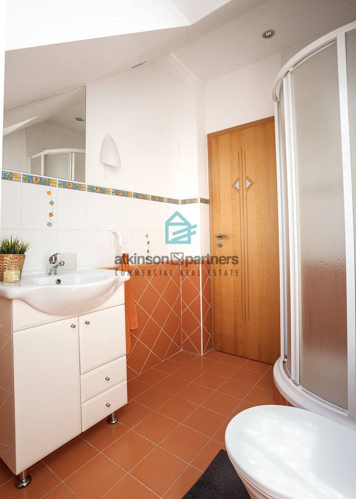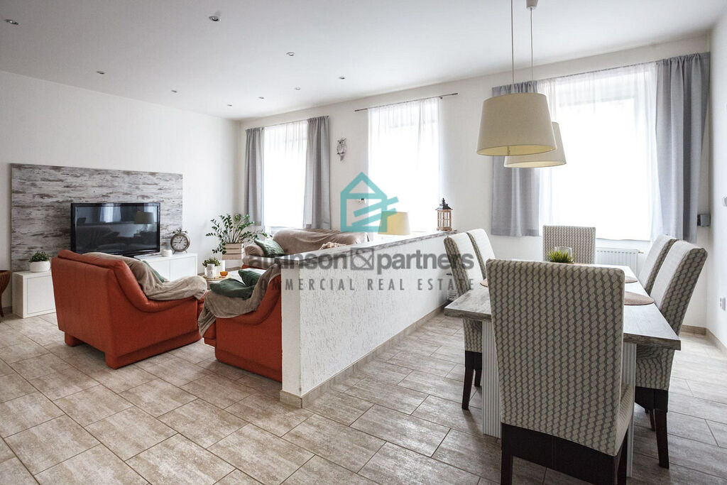 • 2. NP: Prostorný obývací pokoj s kuchyní a vstupem na terasu do zahrady, velkorysá koupelna (vana), zvlášť umístěná toaleta, šatní místnost