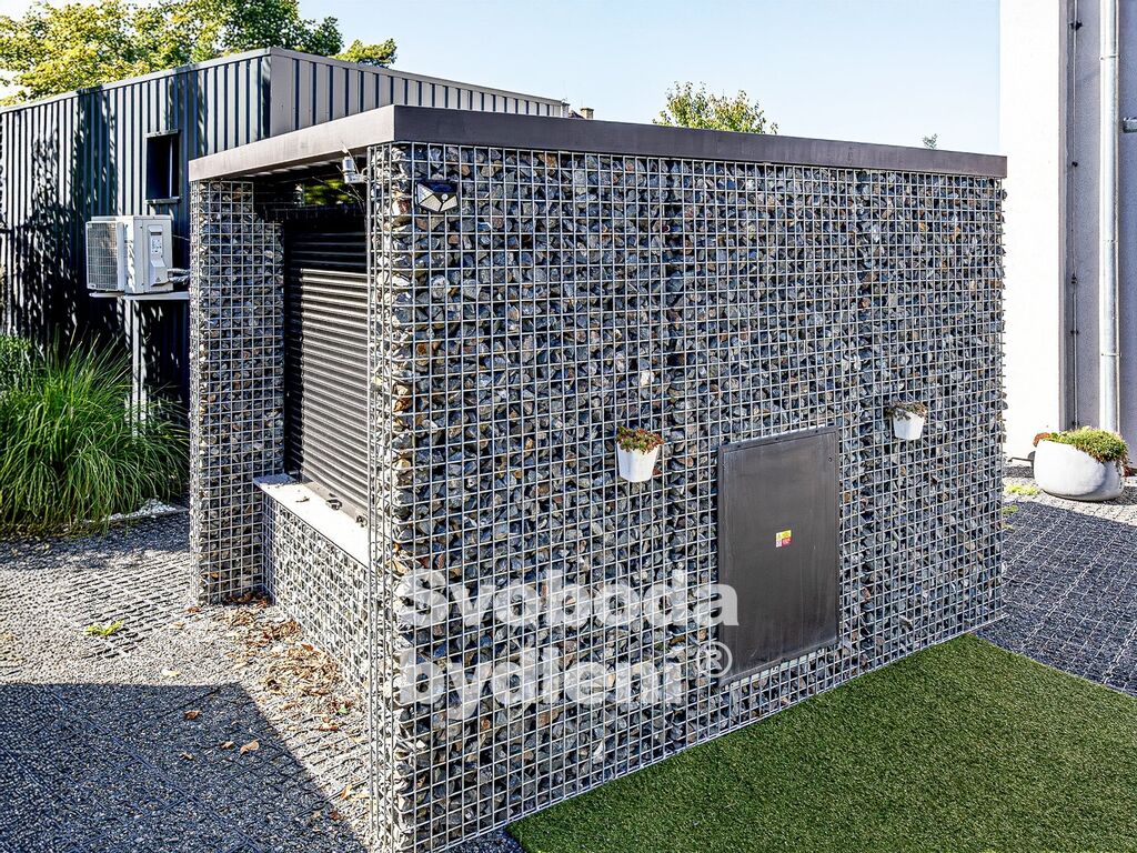 Další výhodou je samostatná stavba se zastavěnou plochou 21m2, zkolaudovaná a přizpůsobená pro drobnou výrobu nebo po úpravě menší kancelář apod. Je zde lednice, dva sklady a dvě kuchyňské linky s pracovní deskou, velké okno. Stavba je napojena na vodu, odpad (výlevka) a el. energii. Vytápění/chlazení zajišťuje klimatizační jednotka.