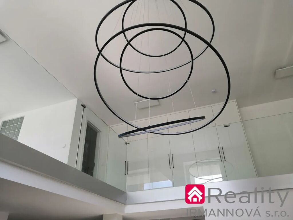 Nadstandardní vybavení nabízí zakázková kuchyňská linka včetně spotřebičů – vestavná trouba, indukční varná deska, vestavný odsavač par, americké lednice volně stojící, vestavná pračka, dřez a baterie, výsuvy pro šuplíky, příborník, výsuvný odpadkový set, led pásky. Veškeré osvětlení lze regulovat samostatnými ovladači. Celoskleněné zábradlí z tvrzeného dvojskla zajišťuje bezpečnou galerii. Objekt je vybaven klimatizací.