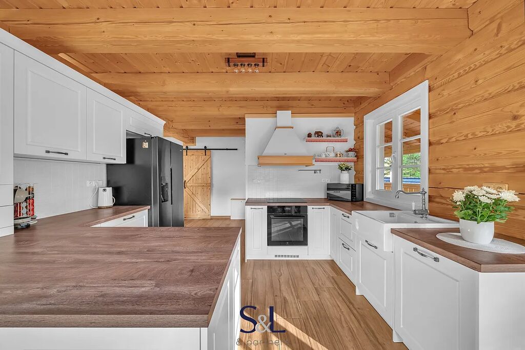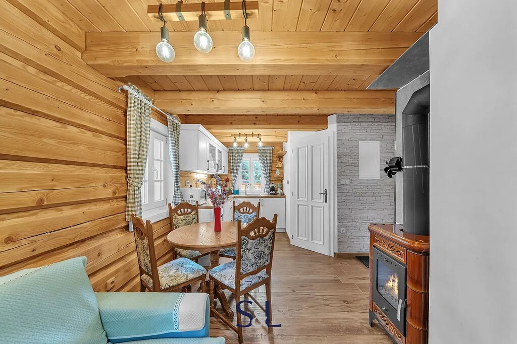 Na pozemku se nachází také menší samostatná roubenka, zkolaudovaná jako jiná stavba, která je od května 2023 úspěšně krátkodobě pronajímána. Hlavním zdrojem tepla je elektrické podlahové topení Hevolta, které doplňují stylová kamna na dřevo – ty dodávají nejen dostatek tepla, ale i útulnou atmosféru zejména během chladnějších dnů. Ohřev vody zajišťuje elektrický bojler.