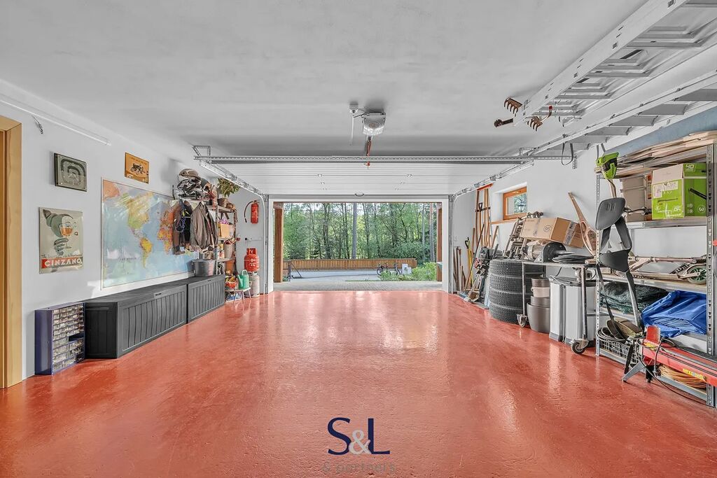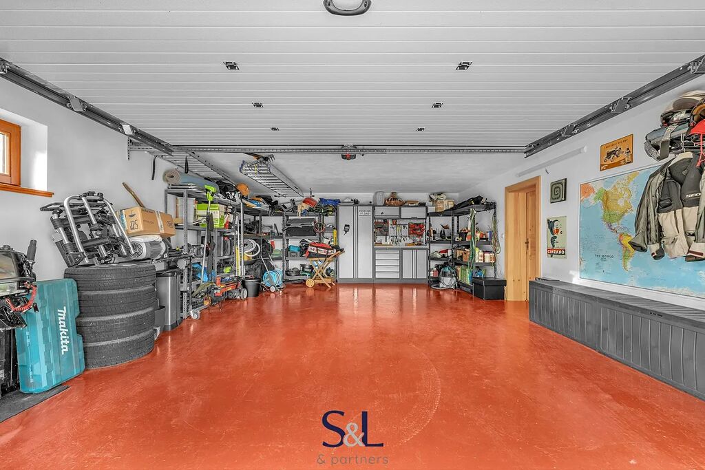 • Suterén (67,27 m²): chodba se schodištěm, prostorná dvojgaráž (39,05 m²), sklad potravin a zahradní sklad s technickým zázemím. Strop v garážové části tvoří železobetonové panely Alidal, doplněné o ocelový průvlak a vytápění je vedené po obvodu. Ve zbytku suterénu je stropní konstrukce realizována v systému POT – MIAKO s monolitickou nadbetonávkou.