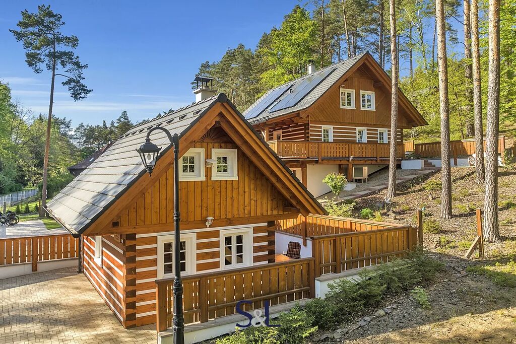 Dvě roubené novostavby na jednom pozemku s fotovoltaikou – úsporné bydlení i investice v srdci přírody, na pomezí Ralské pahorkatiny a Lužických hor.