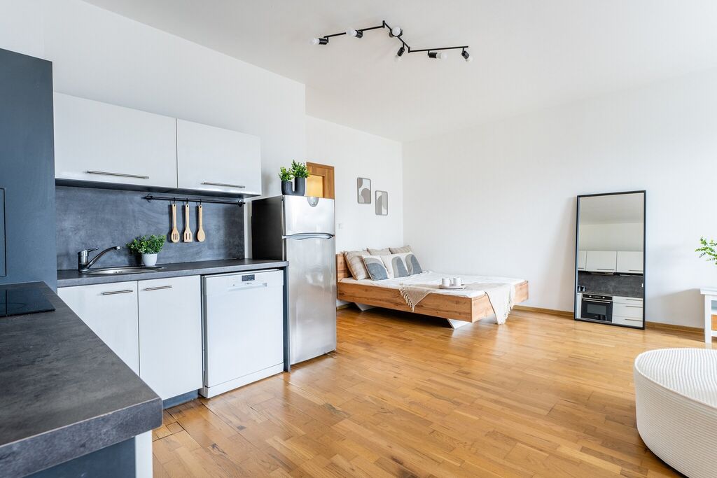 Prodej moderního bytu 1+kk se zahrádkou a parkovacím stáním – Michalovice, Mladá Boleslav
