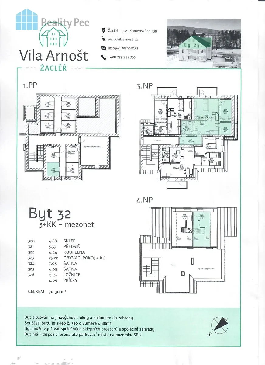 Nabízíme k prodeji kompletně zrekonstruovaný byt ve vile Arnošt v části obce Žacléř, situovanou na adrese J. A. Komenského. Tento byt poskytuje dostatek prostoru a je vhodný jak k trvalému bydlení, tak k pronájmu. Může být ideální místem k bydlení či k rekreaci nebo investicí pro ty, kteří hledají výnosný projekt v oblasti realitního trhu. Vila prochází kompletní rekonstrukcí a disponuje celkem 9 byty s balkónem. Byt v 3. a 4. NP o dispozici 3+kk - mezonet je situován na jihovýchod s balkonem do zahrady. Součástí bytu je sklep o výměře 4,98m2. Byt má k dispozici parkovací místo přímo u domu na pronajatém pozemku.