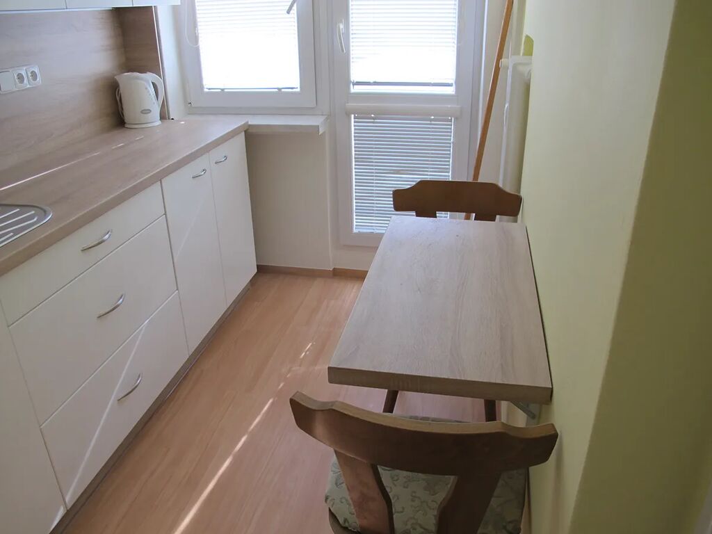 Nabízíme k pronájmu slunný byt 1+1 o ploše 35 m² s balkonem a prostornou sklepní kójí. Nachází se ve 4. NP zděného domu v klidné části centra Zlína, Santražiny. Byt je vybaven kuchyňskou linkou se spotřebiči, koupelnou se sprchovým koutem, pračkou a vestavěmou skříní na chodbě. Výborná poloha v centru města – v dosahu MHD, obchodů, škol, dětských hřišť, služeb, lékařů a úřadů.