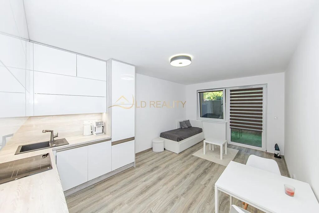 Pronájem bytu o dispozici 1+kk s výměrou 32 m2, který je umístěn v přízemí novostavby bytového domu na ulici Frištenského. K bytu náleží oplocená terasa 9 m2 a venkovní parkovací místo. Byt se pronajímá nezařízený nábytkem, součástí je kuchyňská linka se spotřebiči varná deska, trouba, digestoř, lednice, myčka. Prostorná šatna je vybavena policovými díly na míru. V koupelně se nachází sprchový kout, WC, přípojka na pračku. Byt se nachází ve velmi oblíbené lokalitě s výbornou dostupností do centra. Cena je uvedena bez záloh na služby cca 2 500 Kč + elektřina (800,-Kč), parkovací místo je za poplatek 1 000,-Kč/měs, jistota 20 000,-Kč, provize 1 nájem. Byt je určen pro max. 2 osoby, nekuřáky, bez domácích mazlíčků. Volný od 1.12.