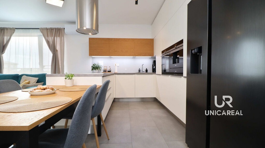 Kuchyně byla navržena od kuchyňského studia Sykora, vybavená vestavnými spotřebiči Siemens (myčka, indukční deska, trouba, kávovar a ohřevná zásuvka), luxusní americkou lednicí Samsung a designovou digestoří Elica.
