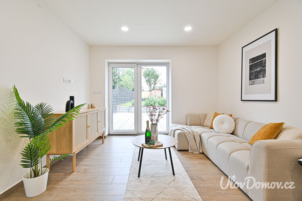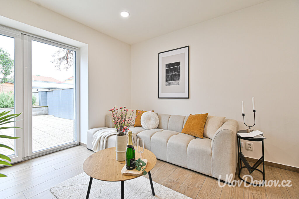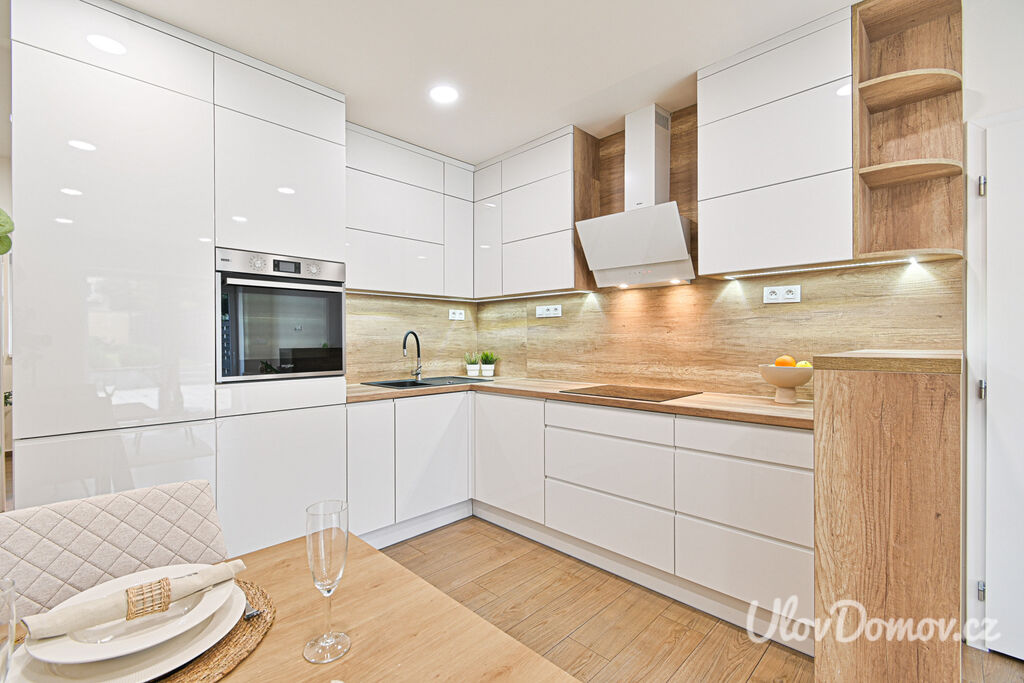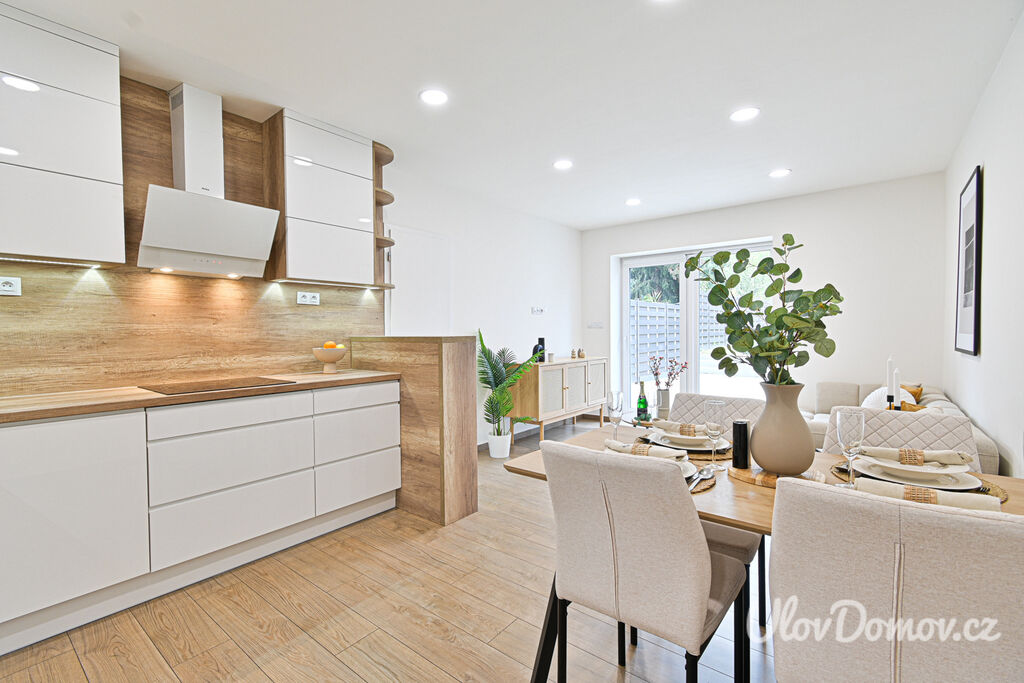 Nemovitost se prodává částečně vybavena. Součástí prodeje jsou kuchyňské spotřebiče – lednice s mrazákem, sklokeramická deska, trouba, digestoř. Interiér si můžete podrobně prohlédnout na 3D virtuální prohlídce.