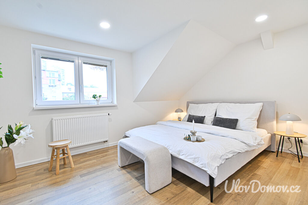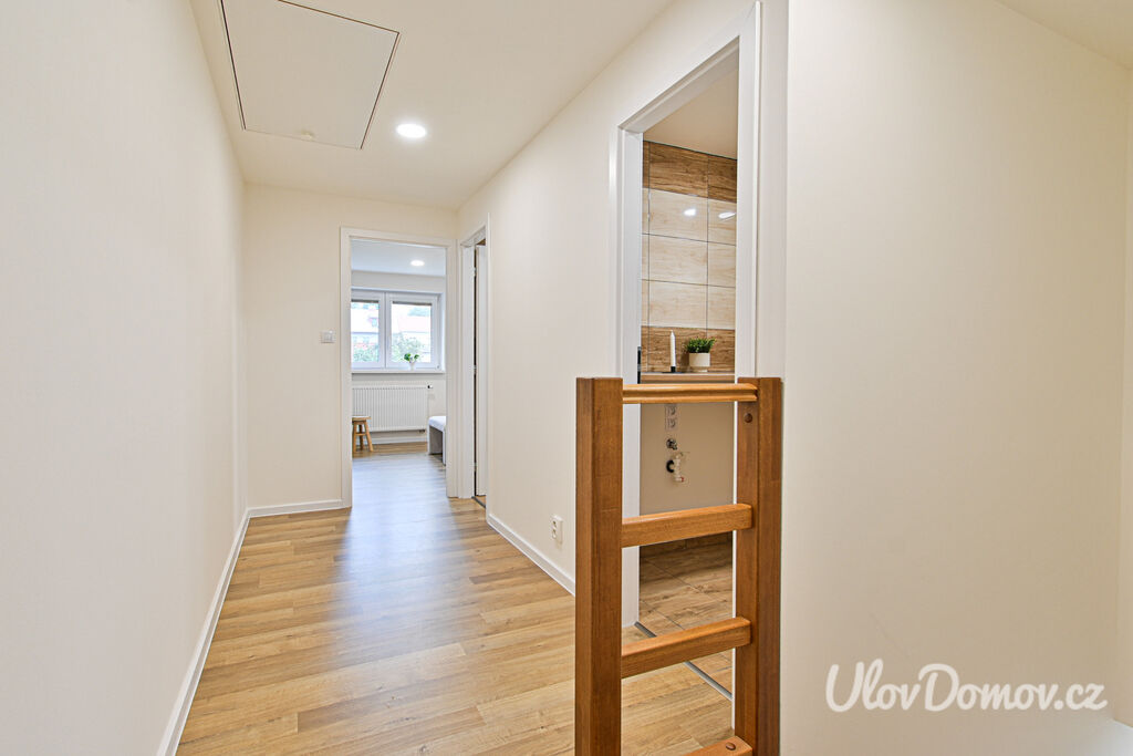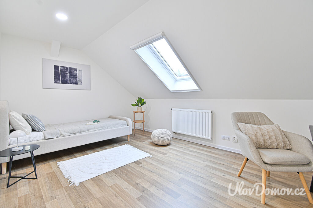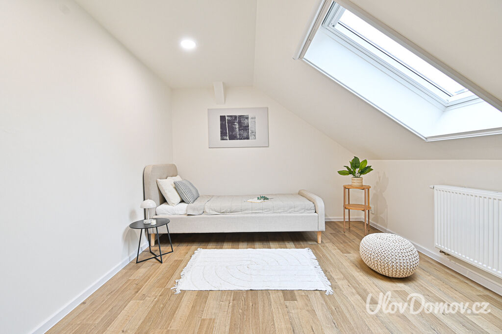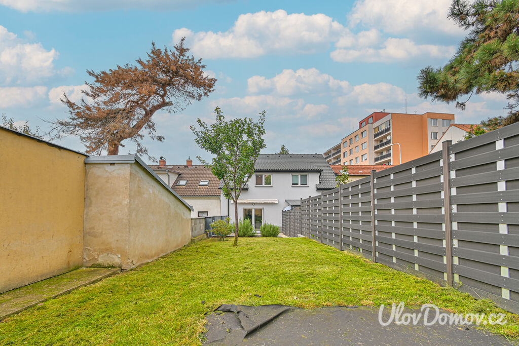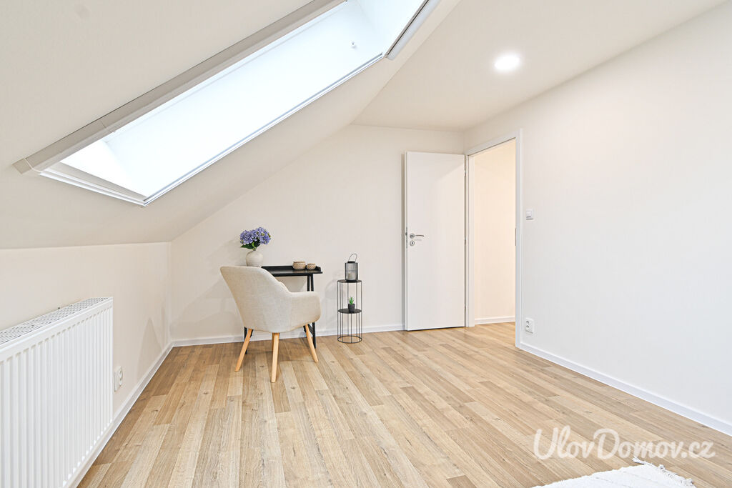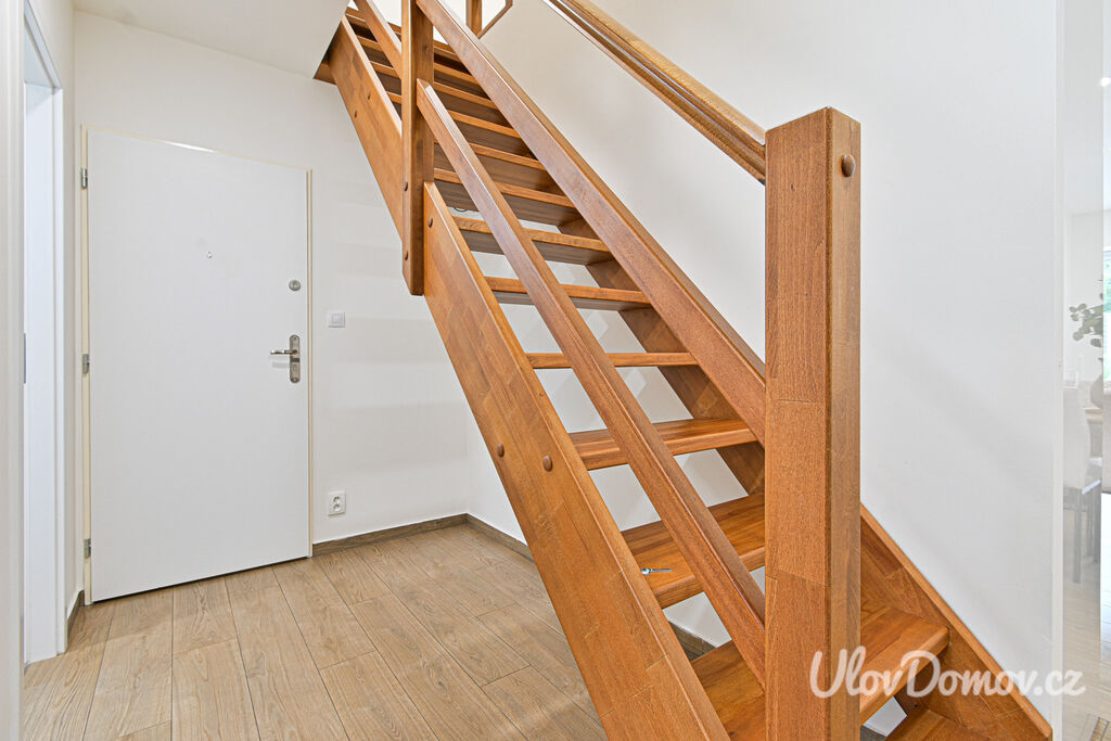 Ve výhradním zastoupení majitele nabízíme ke koupi polovinu dvojdomu o podlahové ploše 85 m2. Na katastru vedeno jako bytová jednotka, ke které náleží terasa se zahradou o výměře 115 m², pracovna, kolárna/sklad a úložný prostor v podkroví.