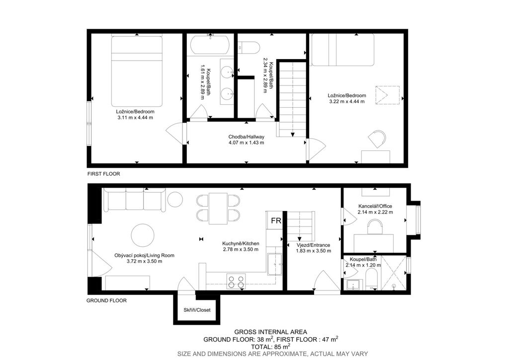 • Obývací pokoj s kuchyňským koutem: 22,5 m²