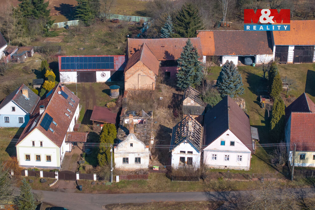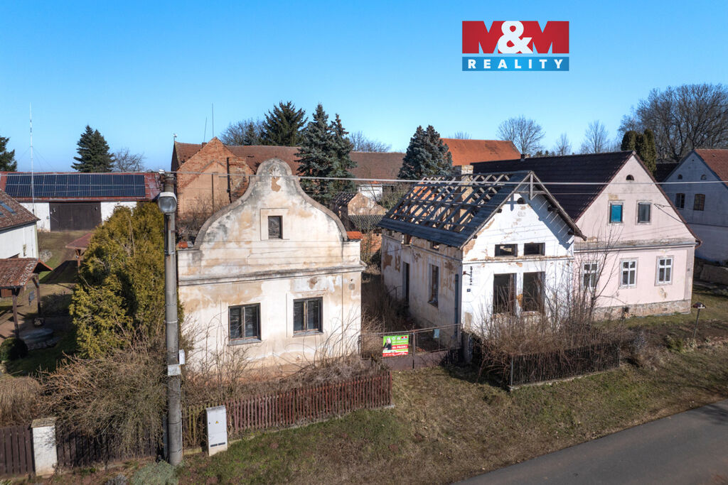 K prodeji je zde pozemek o velikosti 856 m2, na kterém stojí dva rodinné domy s dvěma čísly popisnými a velká stodola. Oba domy jsou ve špatném stavu a jsou tak určeny buď k celkové rekonstrukci anebo přímo k demolici. Demoliční výměry na oba domy a projektová dokumentace na nový dům jsou k dispozici.