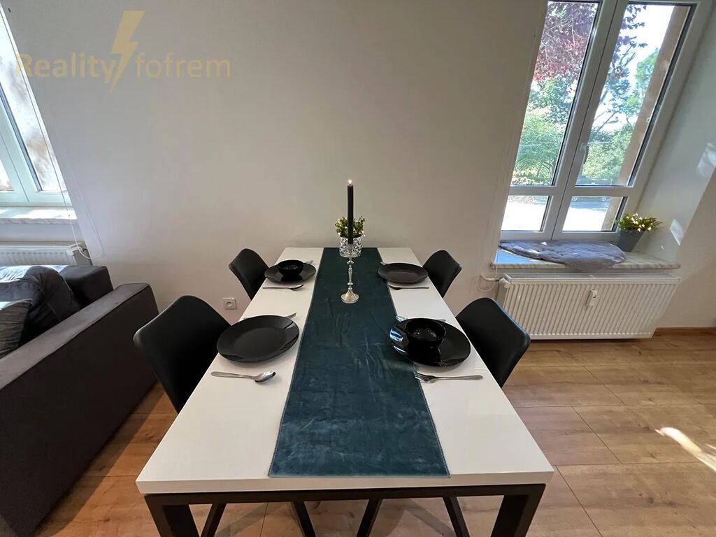 Byt je zařízený, moderní kuchyňská linka ,lednice, myčka, indukční deska, trouba, vestavěné skříně na míru v ložnici i předsíni , rozkládací gauč , skřínky, televize.