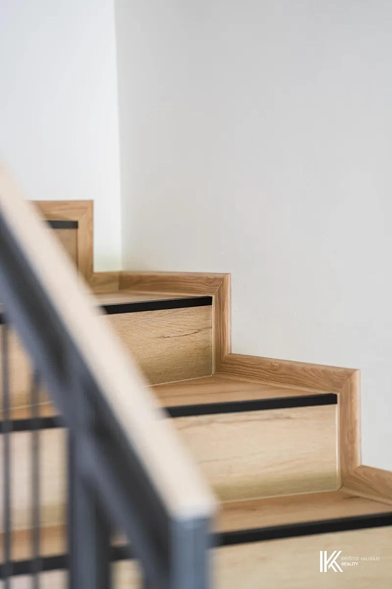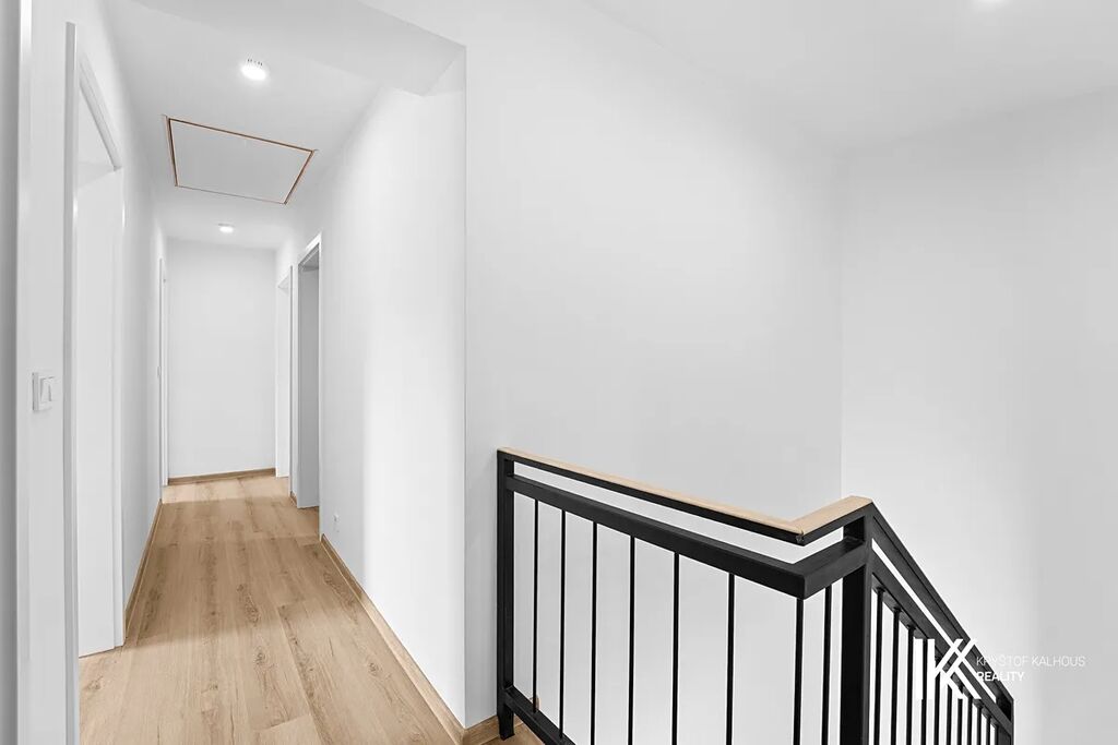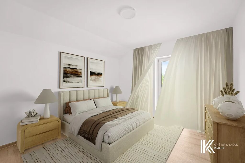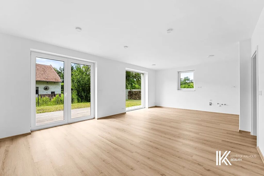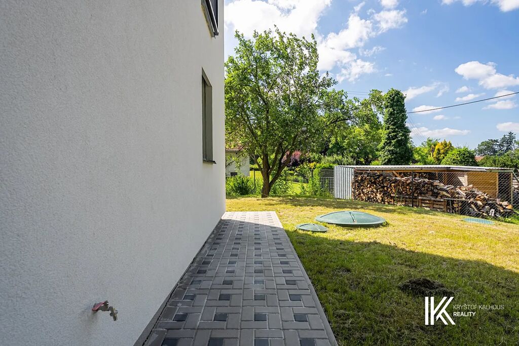 Samotný dům vás přivítá jako harmonicky navržená novostavba s praktickou dispozicí 4+kk a užitnou plochou 107 m². V přízemí vás osloví především prostorný, západně orientovaný obývací pokoj, jehož velká okna zaplavují interiér přirozeným světlem a přinášejí nádherný výhled do vlastní zahrady. Odtud vedou dveře přímo na terasu, kde si snadno vytvoříte venkovní posezení, prostor pro grilování nebo dětský koutek s pískovištěm. Kuchyňský kout je připraven tak, abyste si mohli splnit svůj sen o kuchyni na míru, od barev po vybavení, přesně podle vlastního vkusu.