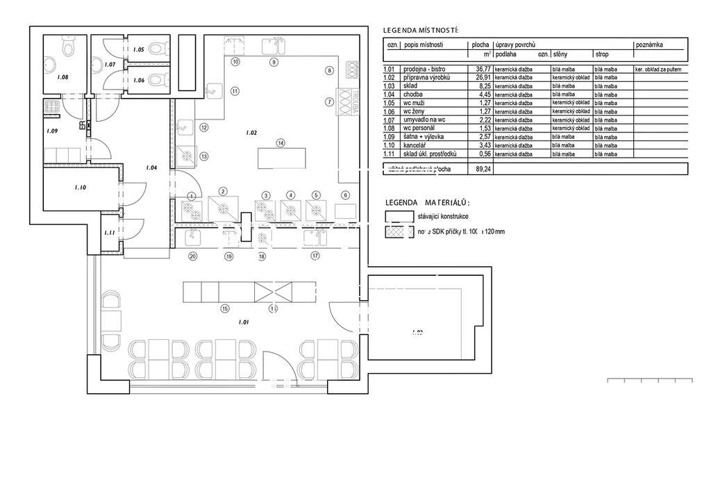Prostor má celkovou plochu 89,24 m2 s promyšleným dispozičním řešením. V prostoru byla provedena moderní a útulná rekonstrukce, která vytváří ideální atmosféru pro hosty.