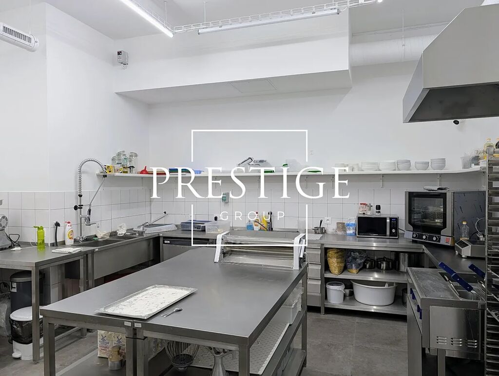 Samostatný prostor zabírá kuchyně o velikosti 27 m2, vybavená veškerým potřebným profesionálním nerezovým vybavením, včetně digestoře, chladicích a mrazicích skříní a pracovních ploch. Kuchyně má všechna potřebná povolení pro teplou kuchyni, což výrazně zjednodušuje zahájení podnikání. Dále je v celé restauraci instalován výkonný ventilační systém.