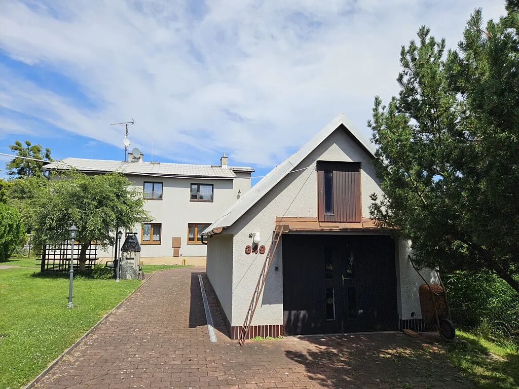 K bytu náleží zděná garáž s úložným prostorem v sedlové střeše nad garáží, samostatně stojící pergola s krbem, 2 odstavná parkovací místa u příjezdové cesty a pozemek zahrady o velikosti 132 m2 (94 m2 přední část, 38 m2 zadní část), na kterém je možno zbudovat pergolu, bazén anebo využívat pro zahradničení.