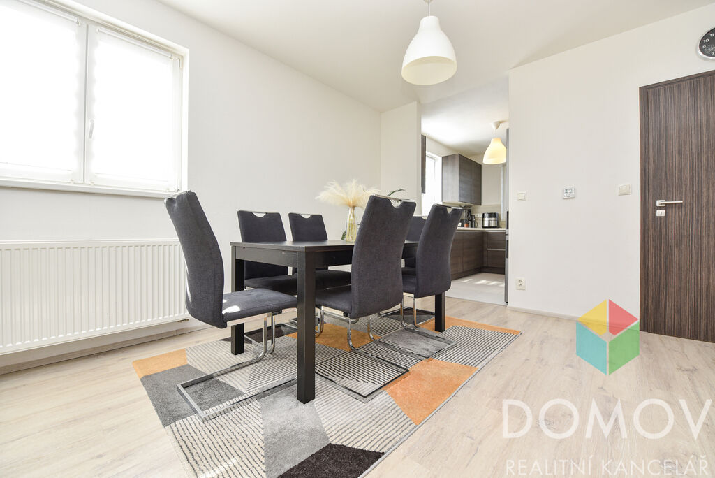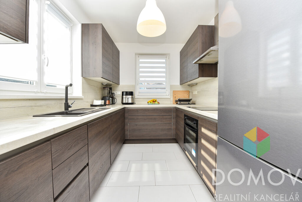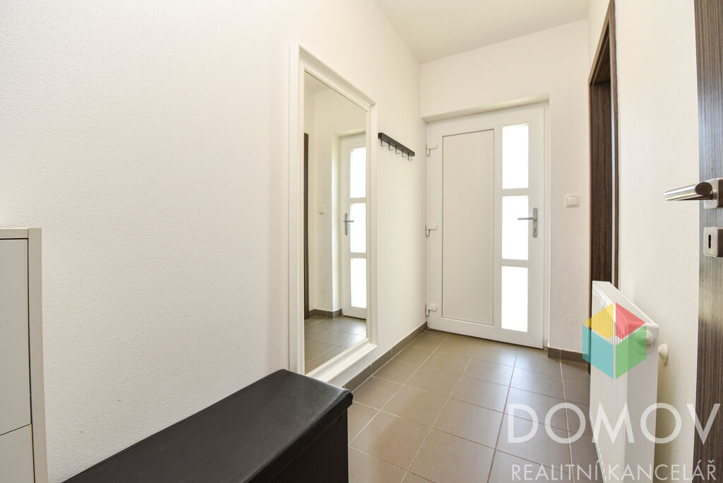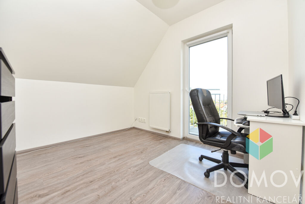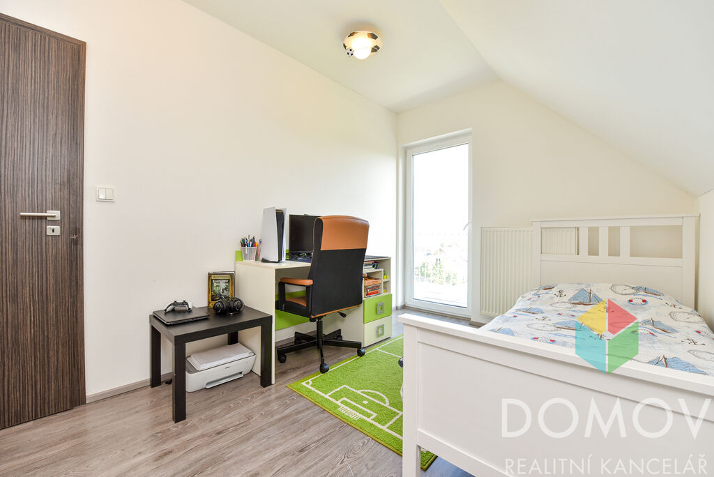 V přízemí se nachází obývací pokoj s jídelnou, praktická kuchyně s vestavnými spotřebiči, koupelna se sprchovým koutem a WC, komora a technická místnost. Po dřevěném schodišti se vychází do podkroví, kde najdete ložnici, dva dětské pokojíčky a koupelnu s vanou. Z pokojíčků je vstup na balkon, odkud se otevírá nádherný výhled do okolí, včetně výhledu na kostel v Králově Dvoře.