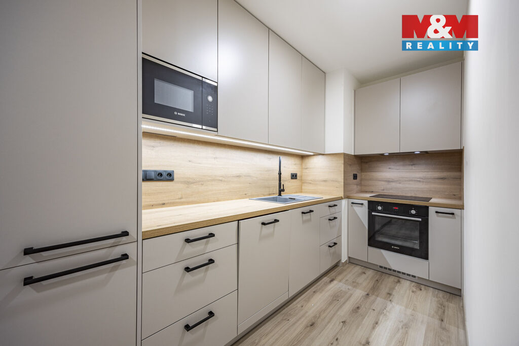 Nabízíme k pronájmu světlý a moderní byt 2+kk o velikosti 59 m² ve 2. patře novostavby s výtahem v klidné lokalitě. Byt je orientovaný na jih, vybaven novou kuchyňskou linkou se spotřebiči (lednice, sporák, trouba, mikrovlnka, myčka, digestoř) a nabízí balkon o ploše 5 m² a vlastní sklep. Ostatní části bytu jsou nezařízené – možnost vlastního vybavení dle vkusu. V ceně nájmu je zahrnuto garážové parkovací stání. V okolí je kompletní občanská vybavenost, zastávka MHD, obchody i parky.