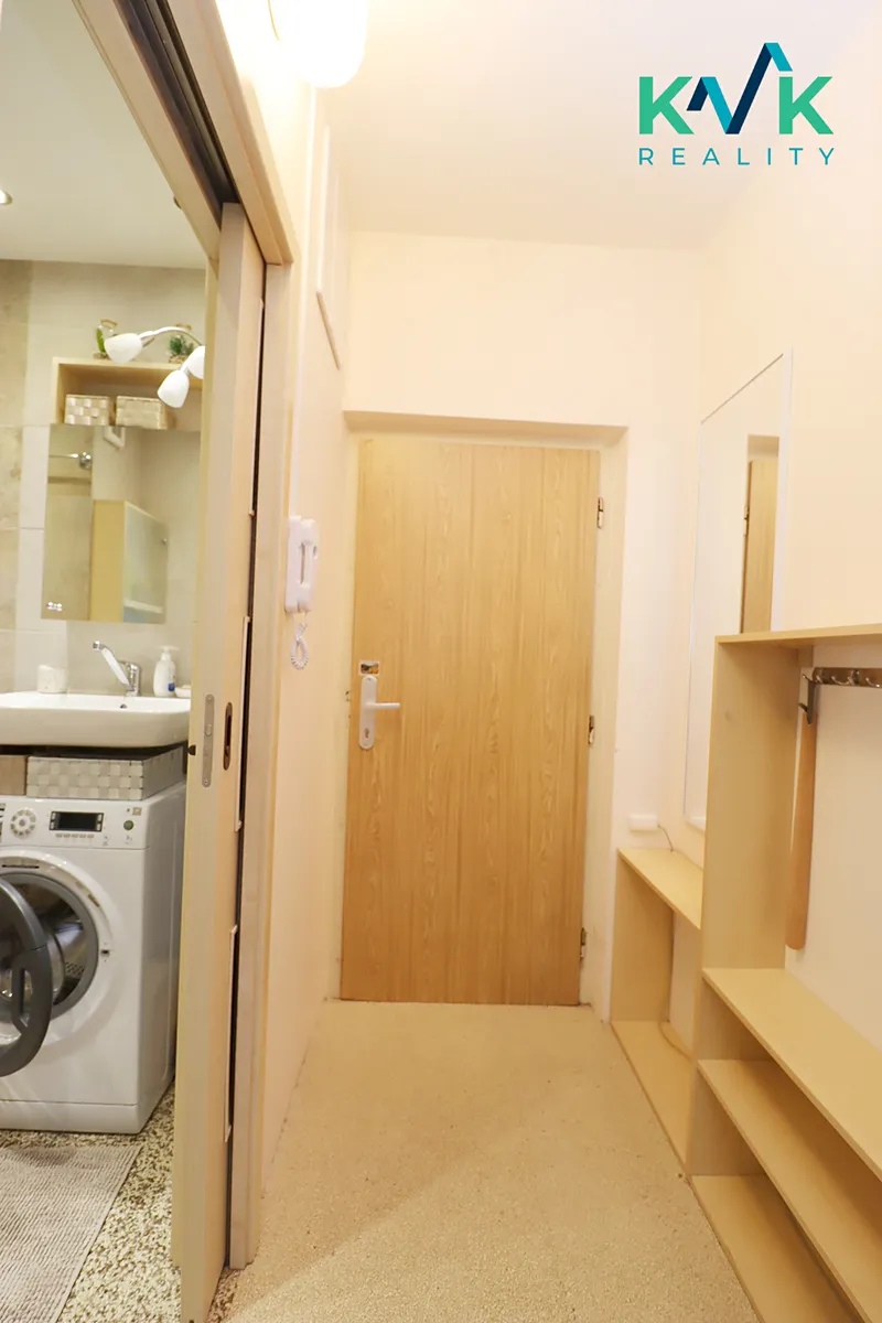 Dispozice bytu je promyšlená a poskytuje komfortní zázemí pro jednotlivce, pár či jako výhodnou investici k pronájmu.