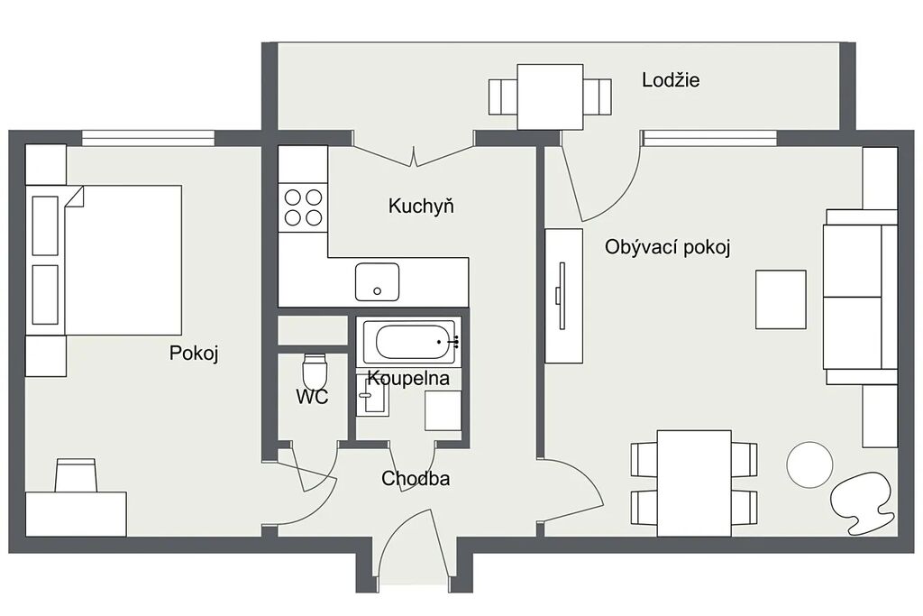 Samotný byt je v původním stavu a je připraven k celkové rekonstrukci, což představuje skvělou příležitost vytvořit si interiér přesně podle svých představ. Dispozice je praktická – dva samostatné, světlé pokoje, vstup na prostornou lodžii z kuchyně a z jednoho pokoje, samostatná kuchyně, koupelna a WC oddělené. K bytu náleží také sklepní kóje v suterénu domu.