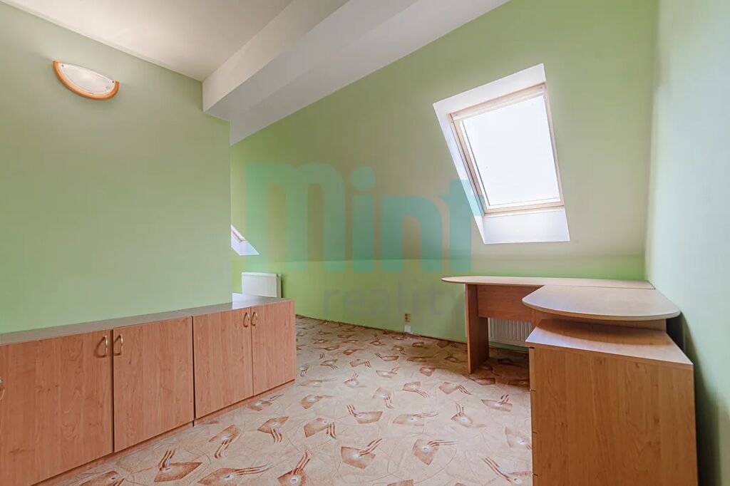 V prvním patře najdete tři samostatné pokoje a prostornou koupelnu s toaletou a vanou. Třetí pokoj disponuje balkonem, ze kterého se otevírá krásný výhled na jihovýchod, jih a jihozápad. Přízemí a první patro jsou propojené otevřeným schodištěm