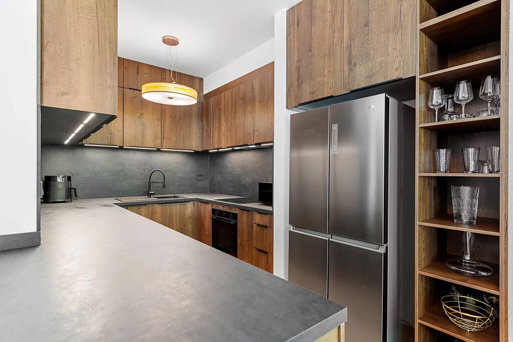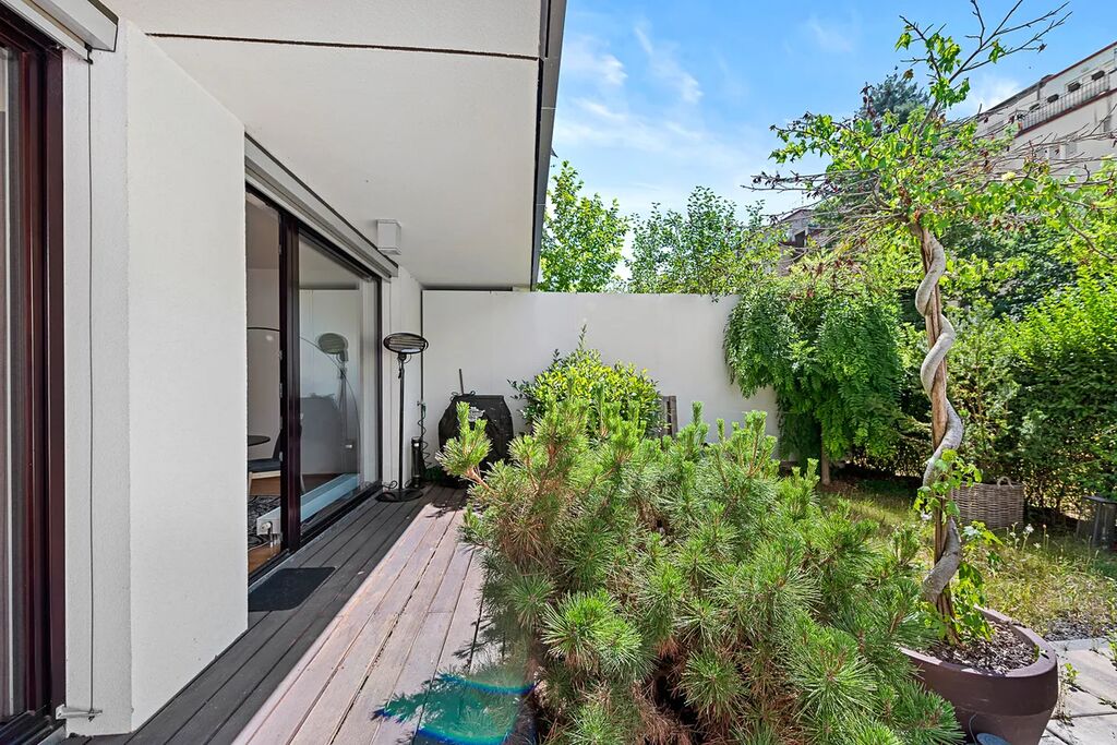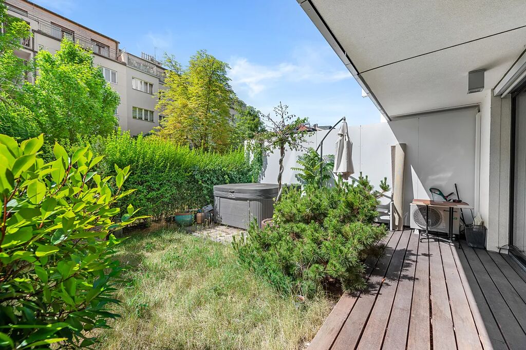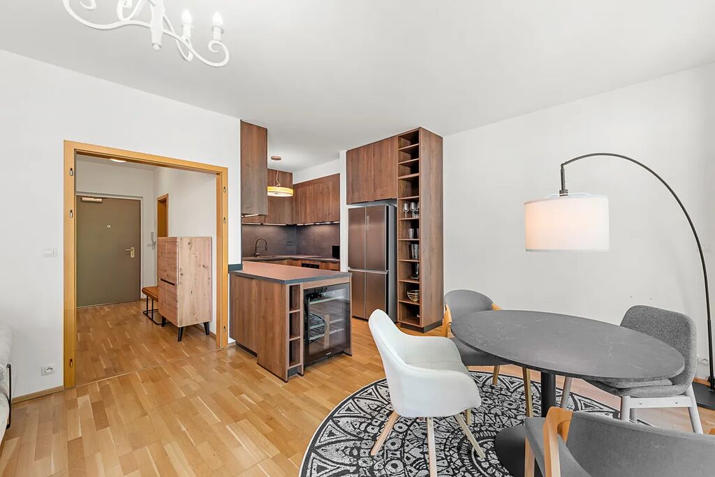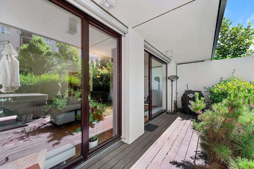 V přízemí bytu se nachází prostorný obývací pokoj s úplně novým kuchyňským koutem vybaveným kvalitními spotřebiči. Z obývací části je přímý vstup na předzahrádku s klidným posezením, kde najdete gril a vířivku – ideální místo pro relaxaci. V přízemí je také nová klimatizace, která zajišťuje příjemné prostředí i v horkých dnech.