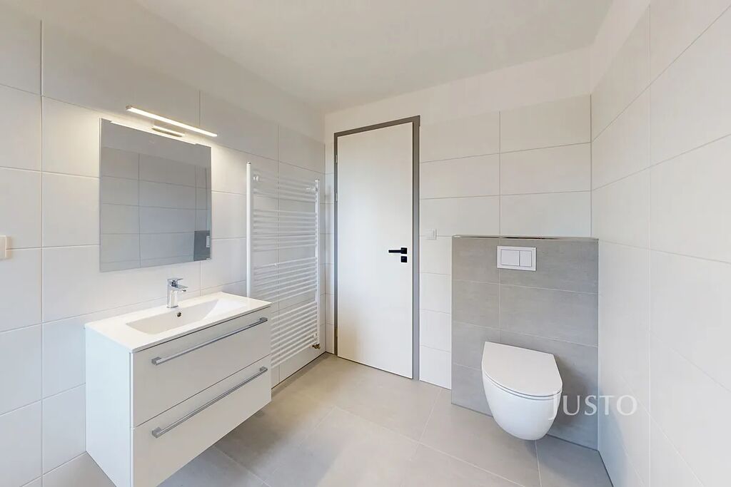 V koupelně najdete vanu, umyvadlo, WC a prostor pro pračku, vše v nadčasovém a elegantním provedení. V bytě jsou plastová okna, kvalitní podlahy a ústřední plynové vytápění s radiátory. K bytu náleží sklep (1 m²) a vlastní garážové parkovací stání přímo v domě.