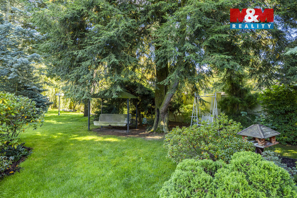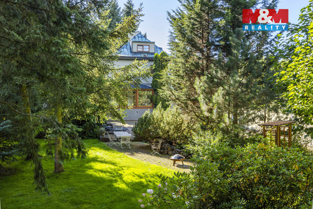 Zahrada o velikosti 1 767 m² s parkovou úpravou, vzrostlými stromy, keři a jezírkem vybízí k odpočinku, stejně jako vyhřívaný bazén s protiproudem a slanou vodou. Unikátní spojení prvorepublikové elegance a současných technologií dělá z této vily skvělé místo k životu. Přijďte se sami přesvědčit o tom, že je to ideální prostor pro vaši rodinu.