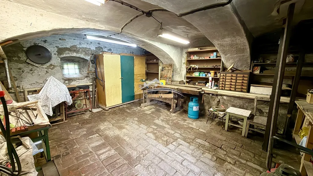 Na dům navazuje prostorná dílna s klenutými stropy, ideální pro domácího kutila, dále pěkná stodola pro skladování dřeva a pod ní chladný sklep vhodný ke skladování potravin či nápojů. Součástí je také zděná kolna využívaná jako garáž, kterou lze upravit i pro vjezd přímo z ulice.