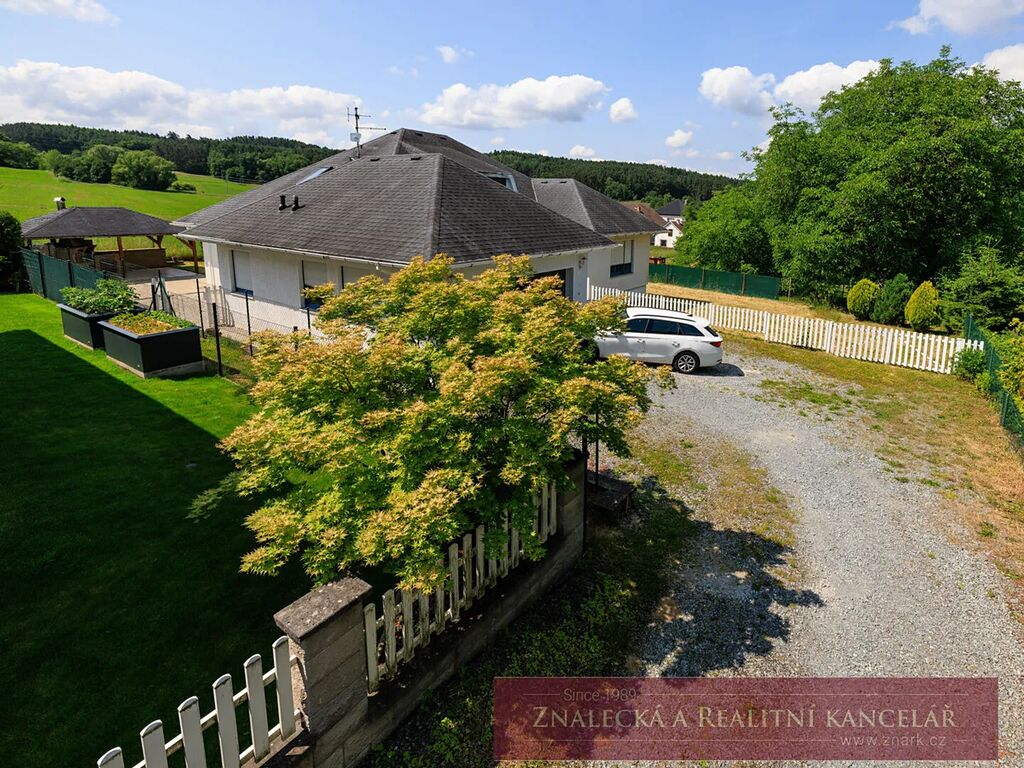 Velkým bonusem je venkovní kryté posezení s krbem, u kterého je připravený prostor pro vířivku s výhledem na lesy – ideální místo pro relaxaci a odpočinek. Součástí pozemku je také praktický zahradní domek, který poslouží například pro uskladnění nářadí, kol nebo jako zázemí pro zahradu.