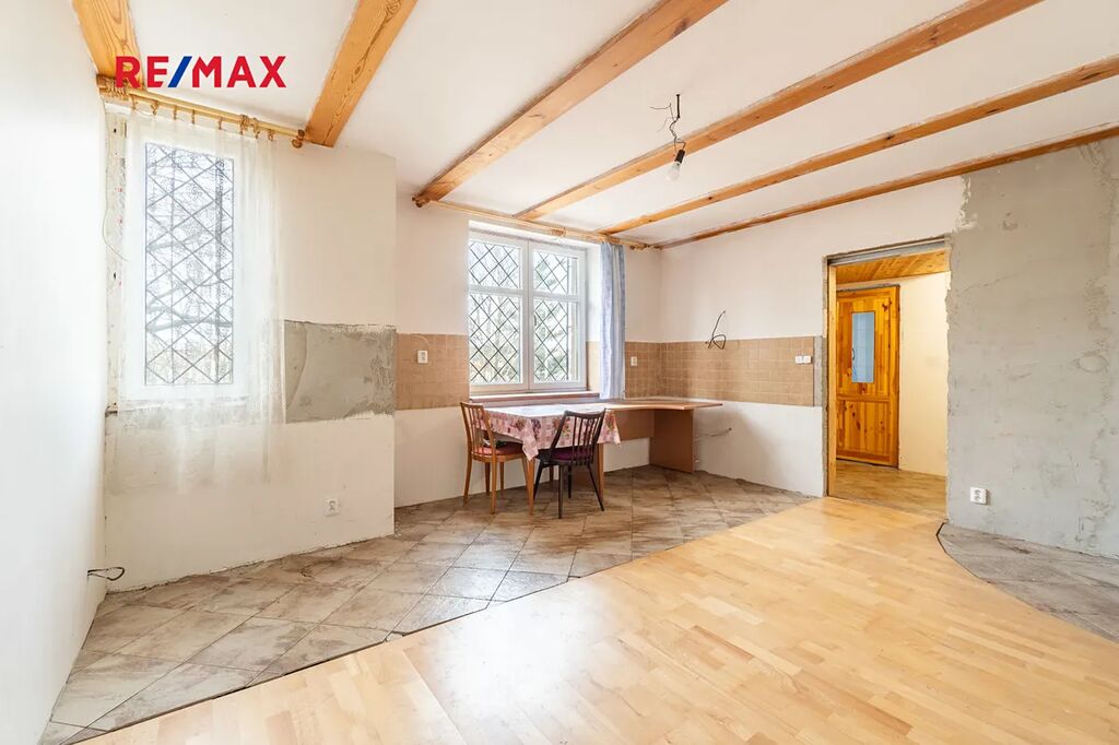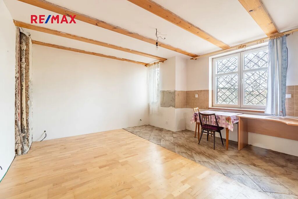 Ideální polovina domu o dispozici 3+kk s užitnou plochou 85 m2 je umístěna ve zvýšeném přízemí domu. Byt prošel částečnou rekonstrukcí, některé části nejsou ještě hotové, proto je možnost si prostor upravit podle svých přestav.