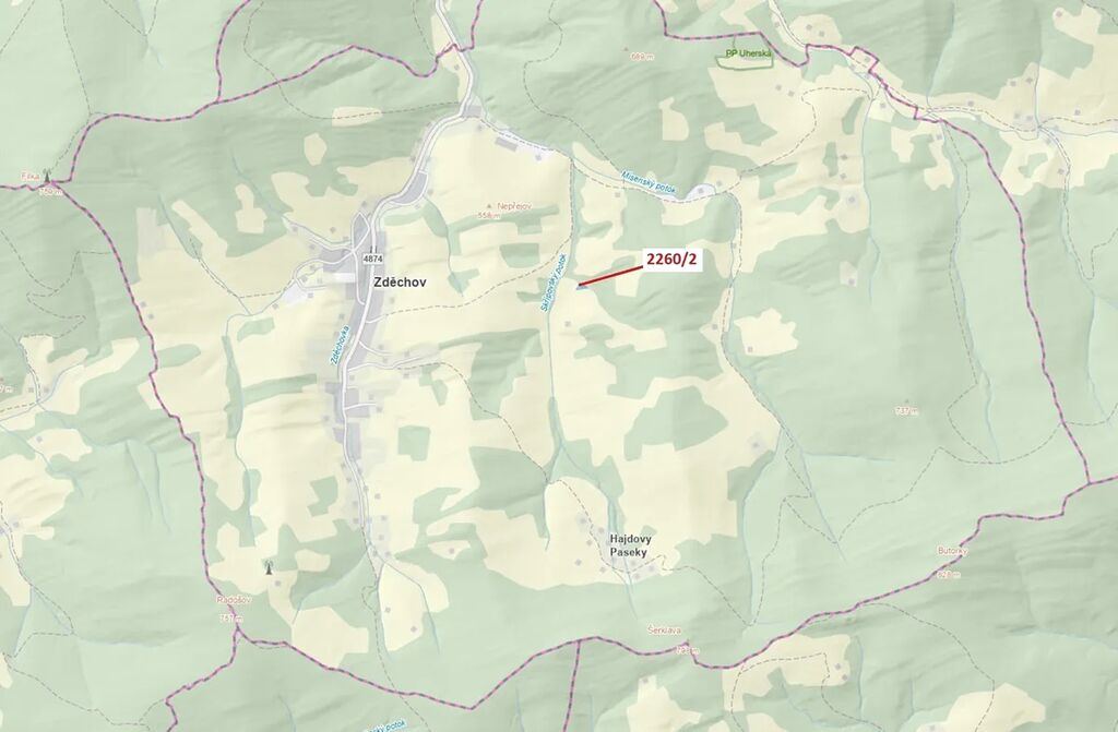 Lesní pozemek o výměře 1022 m2, parcelní číslo 2260/2, podíl 1/1, katastrální území Zděchov, obec Zděchov, obec s rozšířenou působností Vsetín, okres Vsetín, Zlínský kraj.